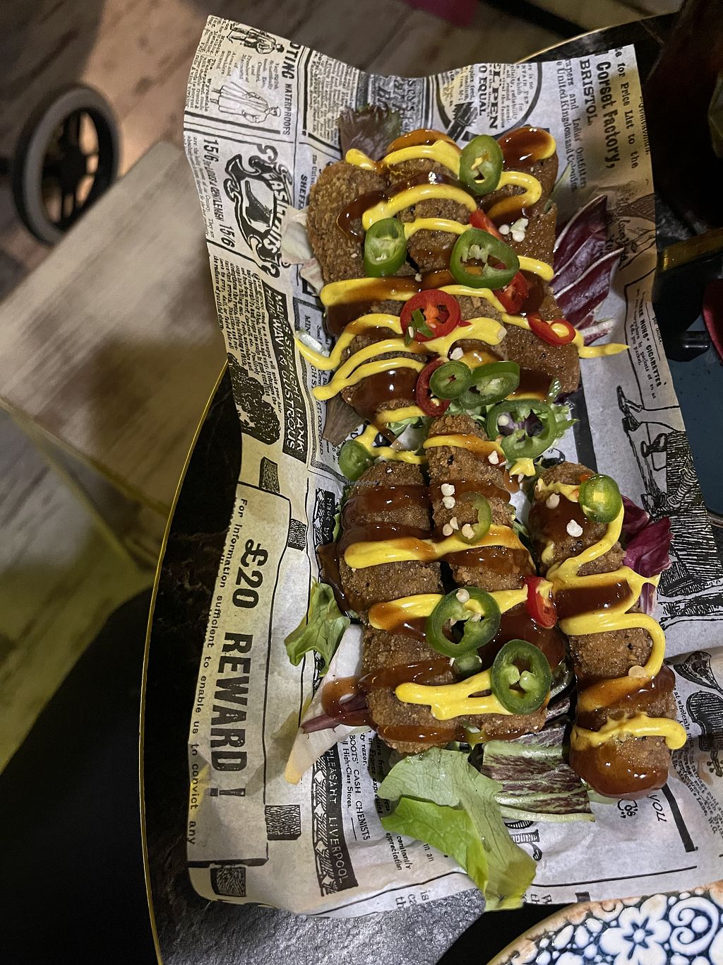 Read moreI am a local, and I can honestly tell you this was extremely tourist baiting. Overpriced and dissappointing. The food and accompanying sauces were served in disposable cardboard containers. We were given barbecue sauce and some kind of cheap bravas sauce. There was a cheap fish and chips feel about the presentation. The nibbles came with stale supermarket bought bagels instead of actual bread. No olive oil, no home made allioli, no fresh ingredients. I obviously complained about the bread situation and the owner offered me crackers instead. Nothing was fresh and the portions were stingy. The salt came in a little embarrassing sachet like in a hostel restaurant. We paid 30 euros for basically 4 vegan flavourless prawns, onion rings on lettuce, supermarket bought American sauces and a sachet of salt.