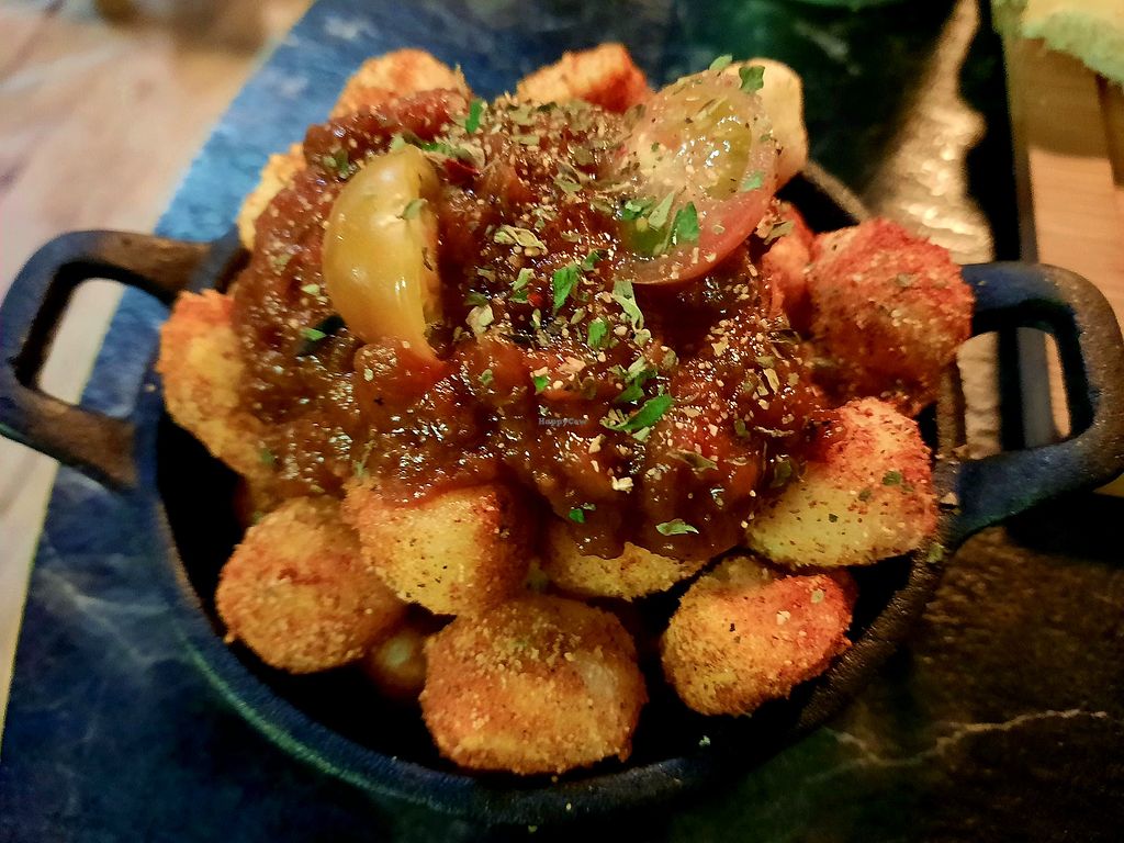 What a great night we had! When we walked in the tiny cozy little restaurant we were warmly welcomed. The staff’s really nice and quick. The all vegan menu is even better: homemade cheeses, gnocchi, seafood, potatoes, sangrias, desserts, croquettes, tofu with sun-dried tomatoes and more!