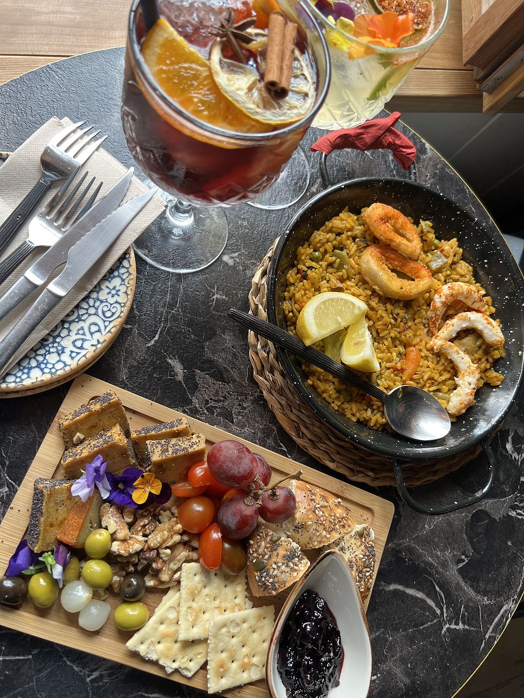 The paella and the spinach crockets are the definite highlights of the menu. Soooo good!Oh and their Camembert is amazing too. Delicious sangrias. The calamari was a bit underwhelming for me, bit bland. Design-wise not the most stylish place. The fashion mood boards in combination with the beach decor just didn’t make sense to me😄