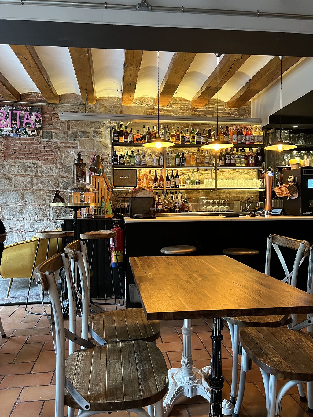 Conocer Bubita Sangria Bar fue una de las mejores experiencias de mi paso por barcelona; el lugar tiene un ambiente muy cómodo y entretenido, probé la comida y cocktails. Todo MUY rico. Me impresionó la textura lograda en las comidas que simulan venir del mar, si no fuese un restaurante vegan habría dudado de lo que comía pero como todo era vegan me sentí muy segura y disfruté. La entrada que pedí tenía una salsa deliciosa; la paella la encontré un poco seca, aún así estaba rica. Además, la atención fue muy buena. Me encantaría volver.