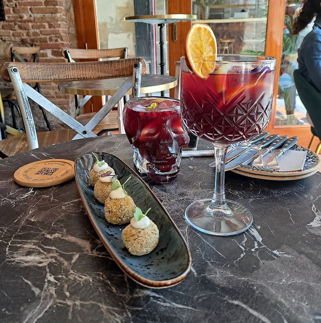 Vegan bar in Barcelona’s El Born district, nestled behind the Picasso Museum. Features a variety of artisan sangrias (alcoholic and non-alcoholic) crafted with local wines, fresh fruits, and Mediterranean spices. Vegan paellas including mushroom, “vegan seafood”, and “chicken” options, tapas such as stuffed peppers, vegan cheeses, and charcuterie; and a Spanish brunch with tortillas, toasts, club sandwiches, pancakes, and gluten-free desserts. Also offers local wines, cocktails, and soft lemonade drinks. No reservations accepted. Previously named BarCeloneta Sangria Bar and relocated from Calle Sevilla 70. Open Mon-Tue 10:00-23:00, Wed-Thu 10:00-23:30, Fri-Sat 10:00-00:00, Sun 10:00-23:30. Hours change seasonally.