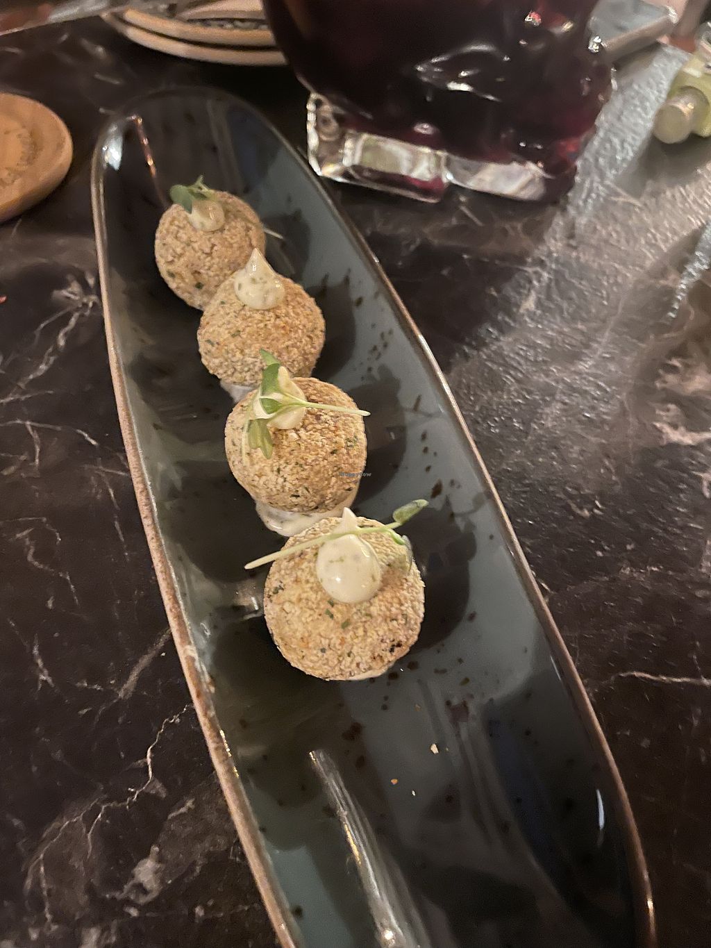 Friendly staff. We loved the vegan seafood platter and the virgin sangria. The mushroom croquettes were not what I expected but had a good flavor.