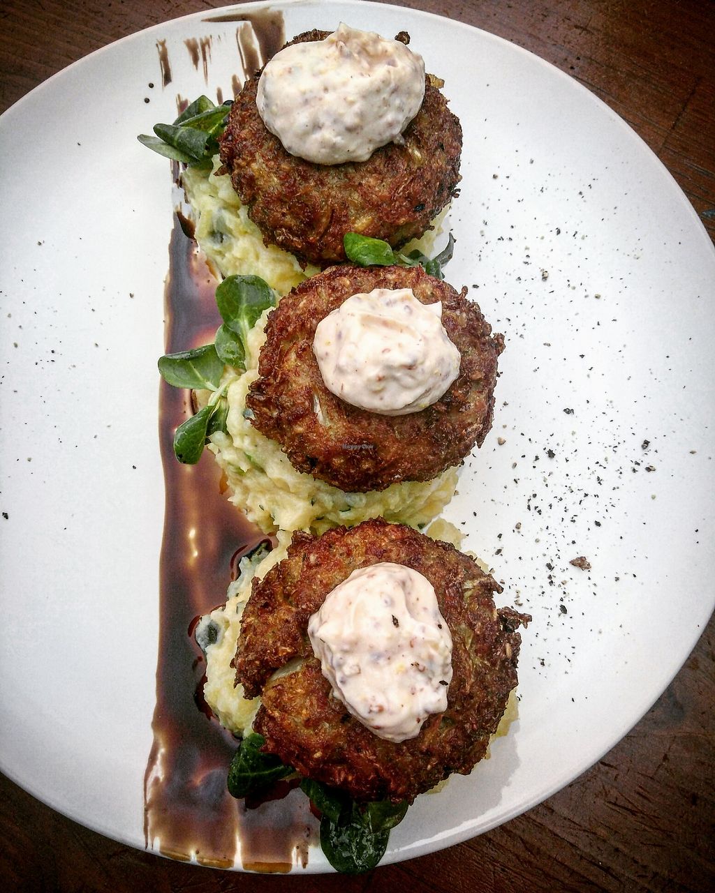 Vegan pub and restaurant serving snacks and meals along with a variety of drinks including beer from regional breweries. Example of savory foods include goulash soup, gyro bowl, seitan steak over mashed potatoes, fried cheese with baked potato and tartar sauce. Est. 2019. Reported closed, Aug 2020.
