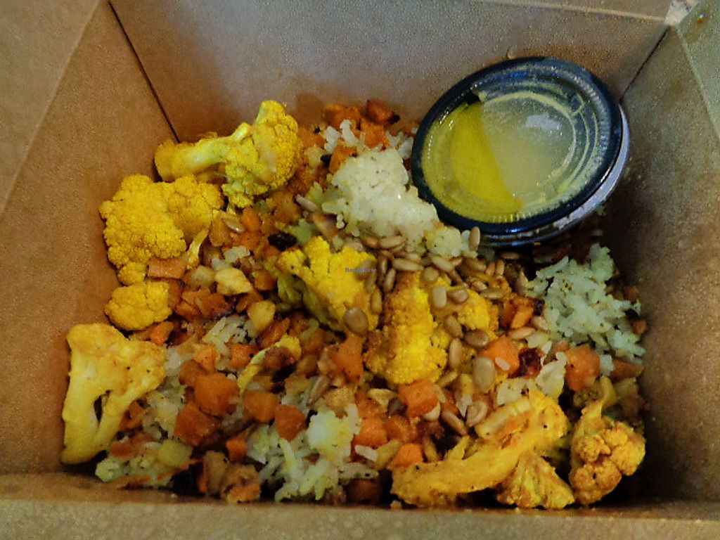 Golden Veggie Bowl. Jasmine rice, turmeric cauliflower, sweet potatoes…