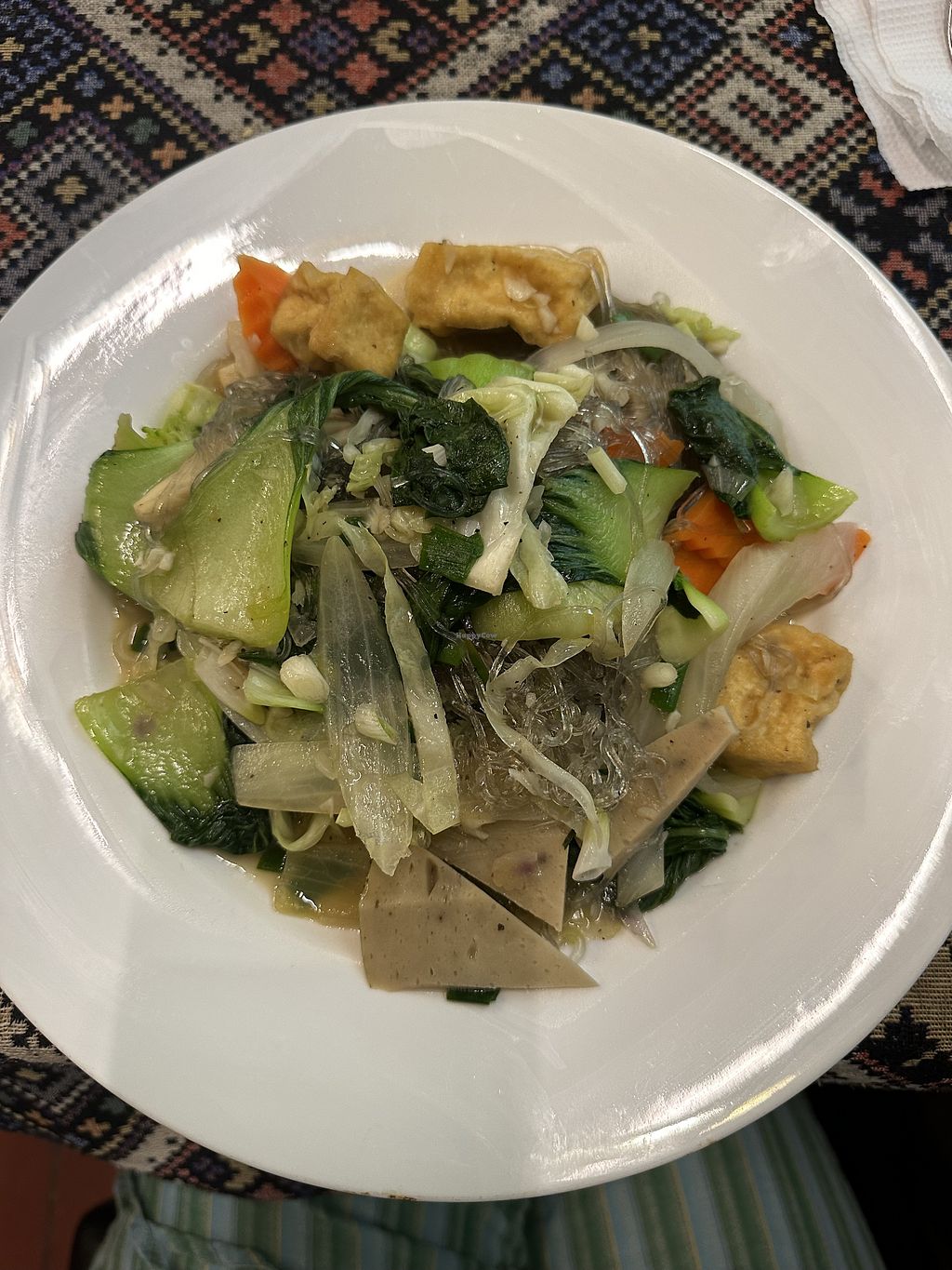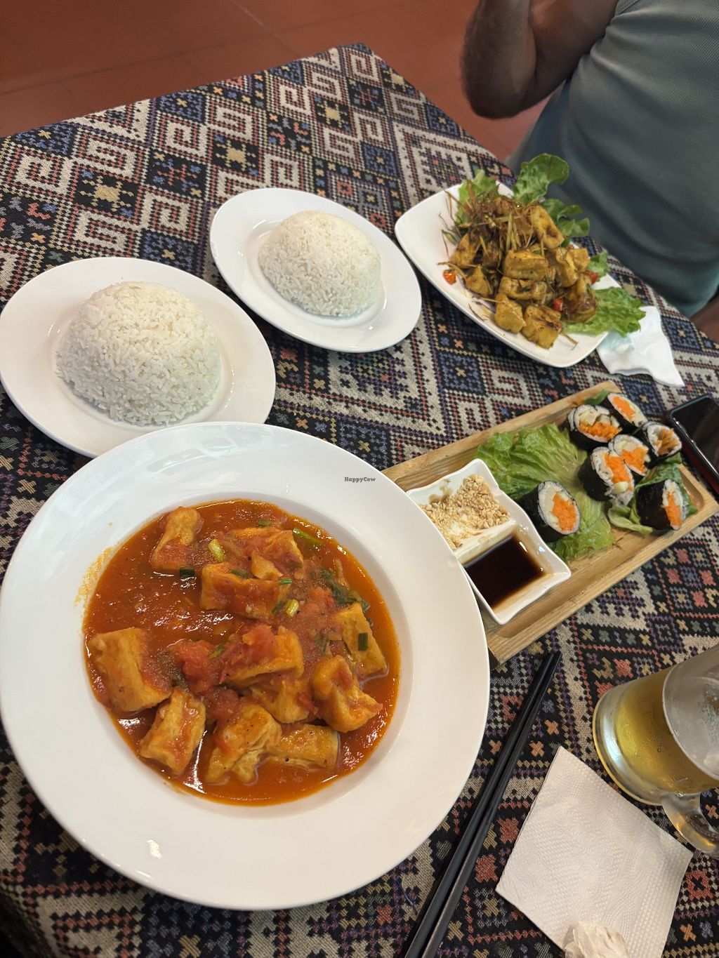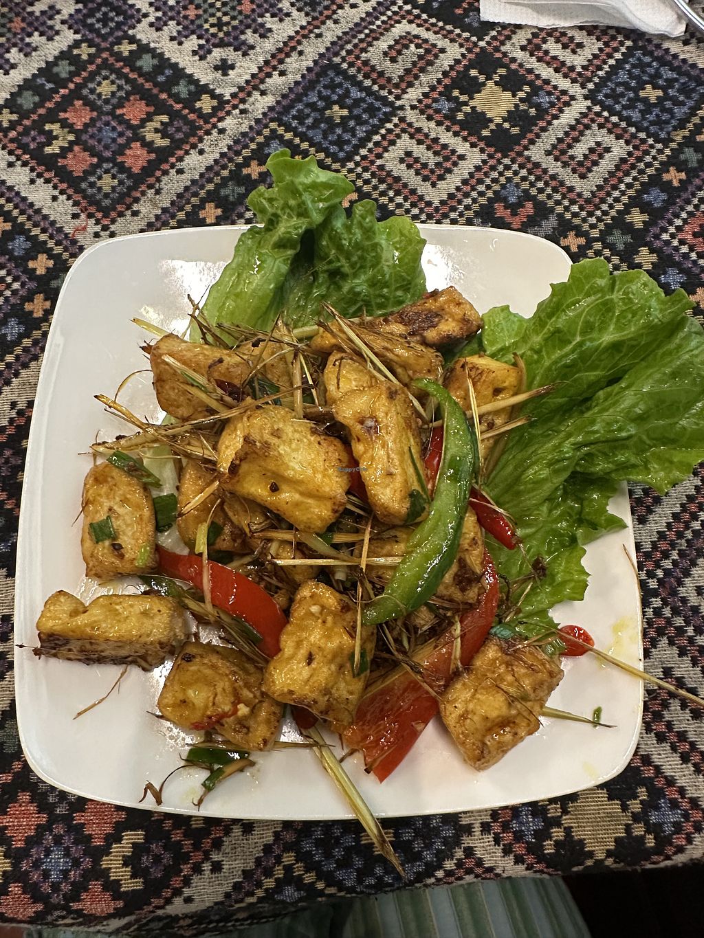 Tofu in tomato sauce and fried tofu with chilli and lemongrass