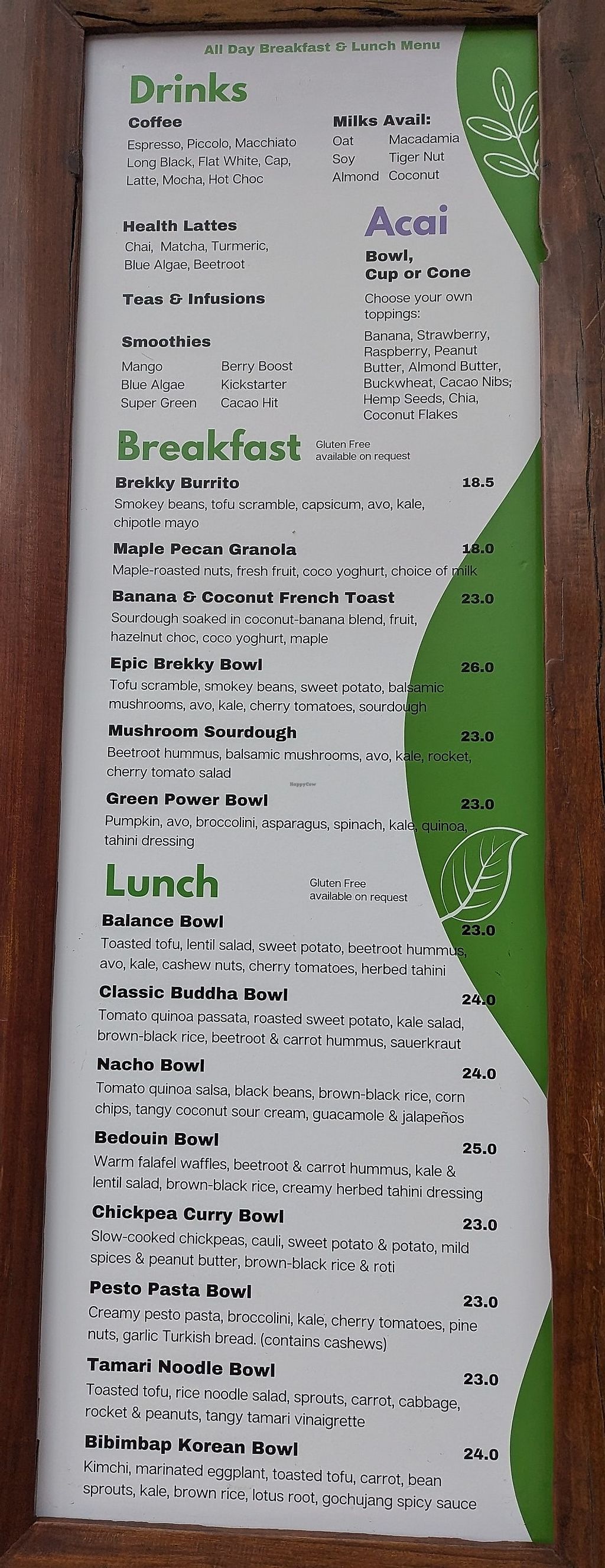 Great menu with bowl meals, salads, granola, French toast, treats and smoothies. I enjoyed the Epic Brekky Bowl, with all the traditional components, including scrambled tofu, baked beans, mushrooms, kale, yam, guacamole - there’s a burrito version too. Curry, pasta and other bowl meals. I want to try them all.