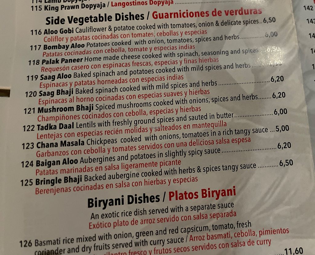 Alu palak, curry, rotis for two, papadum and pickles tray, vino tinto, coca cola zero and aqua con gas were 31 euros. Basic nepalese food, good, but nothing phenomenal.