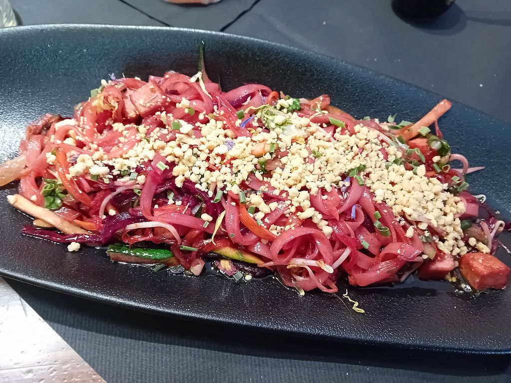 Vegan meditation thali with rice, Dahl, curry & tofu palak with popado…