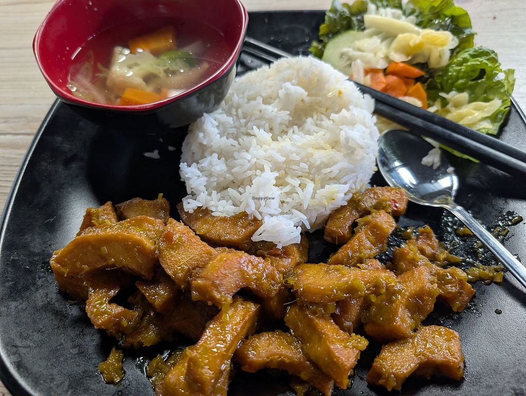 The best vegan Vietnamese food I’ve had outside of Vietnam! The fish ball noodle soup had the perfect textures and flavors. My partner had the chili lemongrass chicken rice dish, you can really taste the lemongrass! Not spicy at all but there’s two types of hot sauce on the table, plus fish sauce, white pepper, and soy sauce for you to add yourself. I love this place and will definitely be coming back! We came after visiting family graves at Rose Hills, it’s also right by the Whittier Narrows! Shares a parking lot with a large Vietnamese grocery store too
