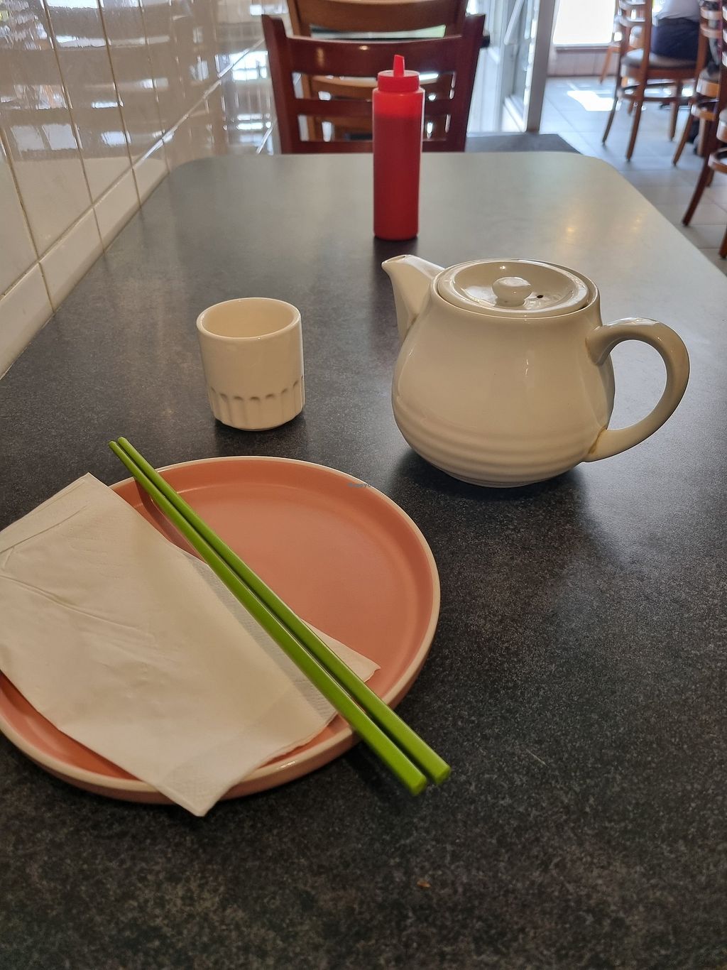 Pros: The price and prox. to my "hotell", Friendly staff, free tea that was really good, Many options, Kung Pao chicken with rice was tasty