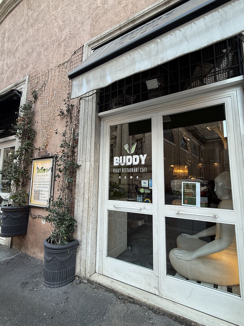 Buddy Veggy gave me the best vegan experience on the 1st day in Rome. The location is easily accessible and located at the corner of intersection where people can see. Foods were very tasty, generous amount, simple plating, affordable price. The owner is a vegan and all the staffs were friendly and nice to answer some questions. Whenever we go, it was full house. Animal friendly too. I will definitely come back during my trip in Rome!