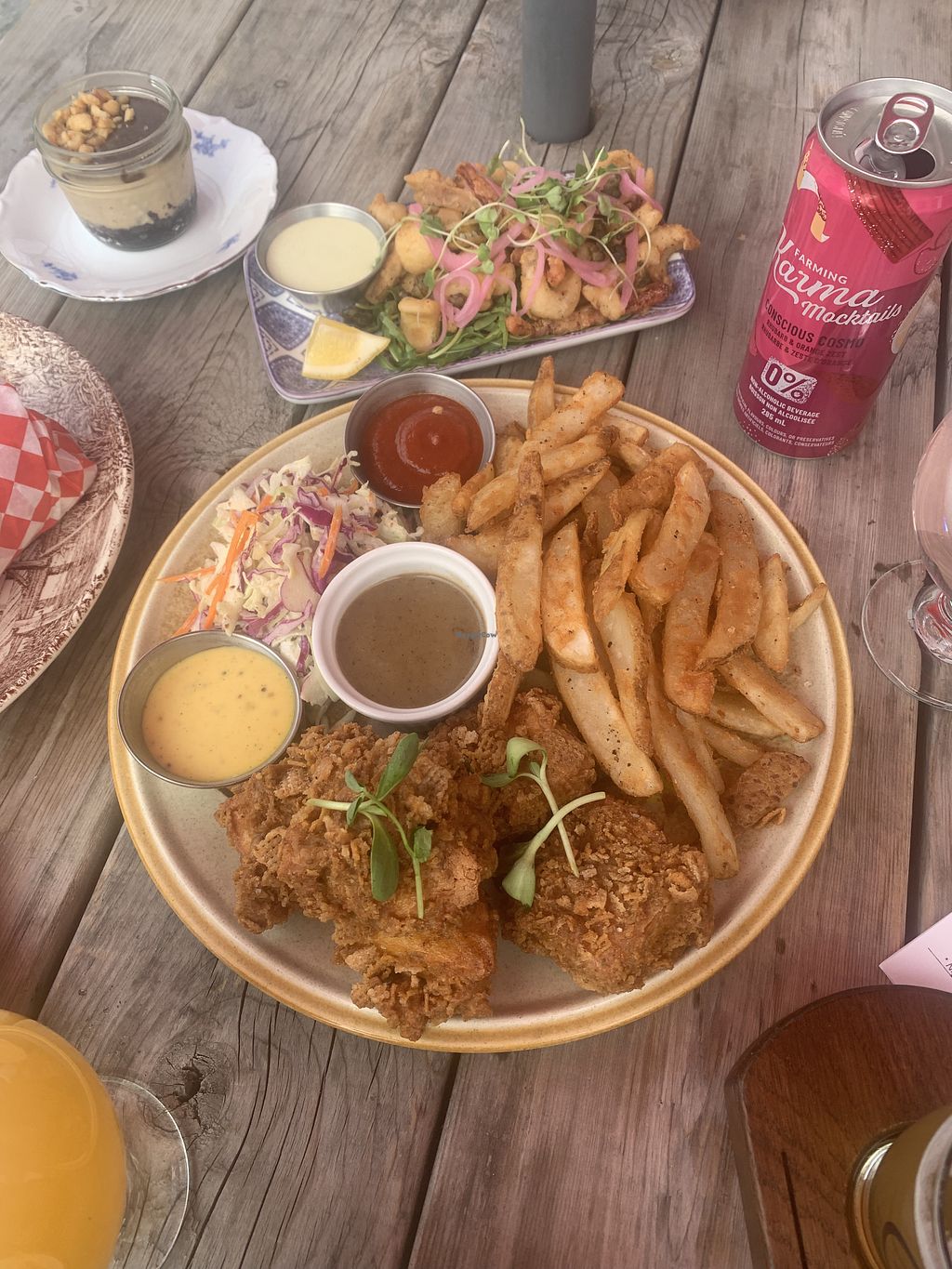 My husband and shared the palm heart calamari as an appetizer and the Nashville sliders as a main. The flavour of the calamari was delicious, but the portion seemed really really small compared to what we used to get when Renegades was open (oyster mushroom calamari). The 2 sliders we got were delicious. Really exactly what you would expect them to taste like. The slaw and sweet potato fries with them, and the aioli all tasted great.