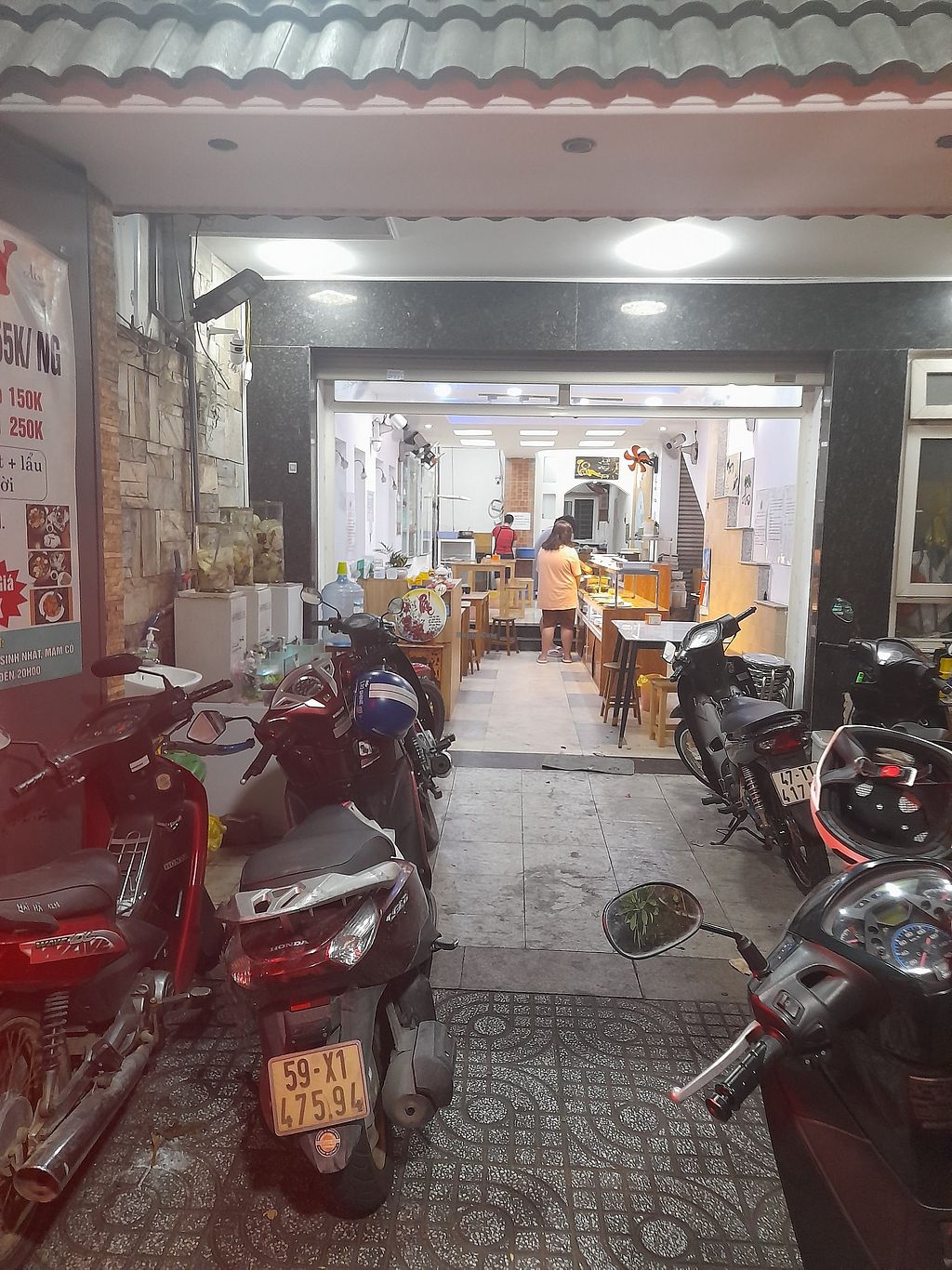 Vegetarian buffet offering basic com chay + brown rice, fresh tofu in various forms, vegetables prepared in a variety of ways, soups, and other dishes and soups to order. Not too greasy and usually has fruit for dessert. Low tables upstairs is like sitting on the floor to eat. Relocated from 120 Duong A4, phuong 12, Tan Binh. Open Mon 11:00am-8:30pm, Tue-Sun 11:30am-8:30pm.