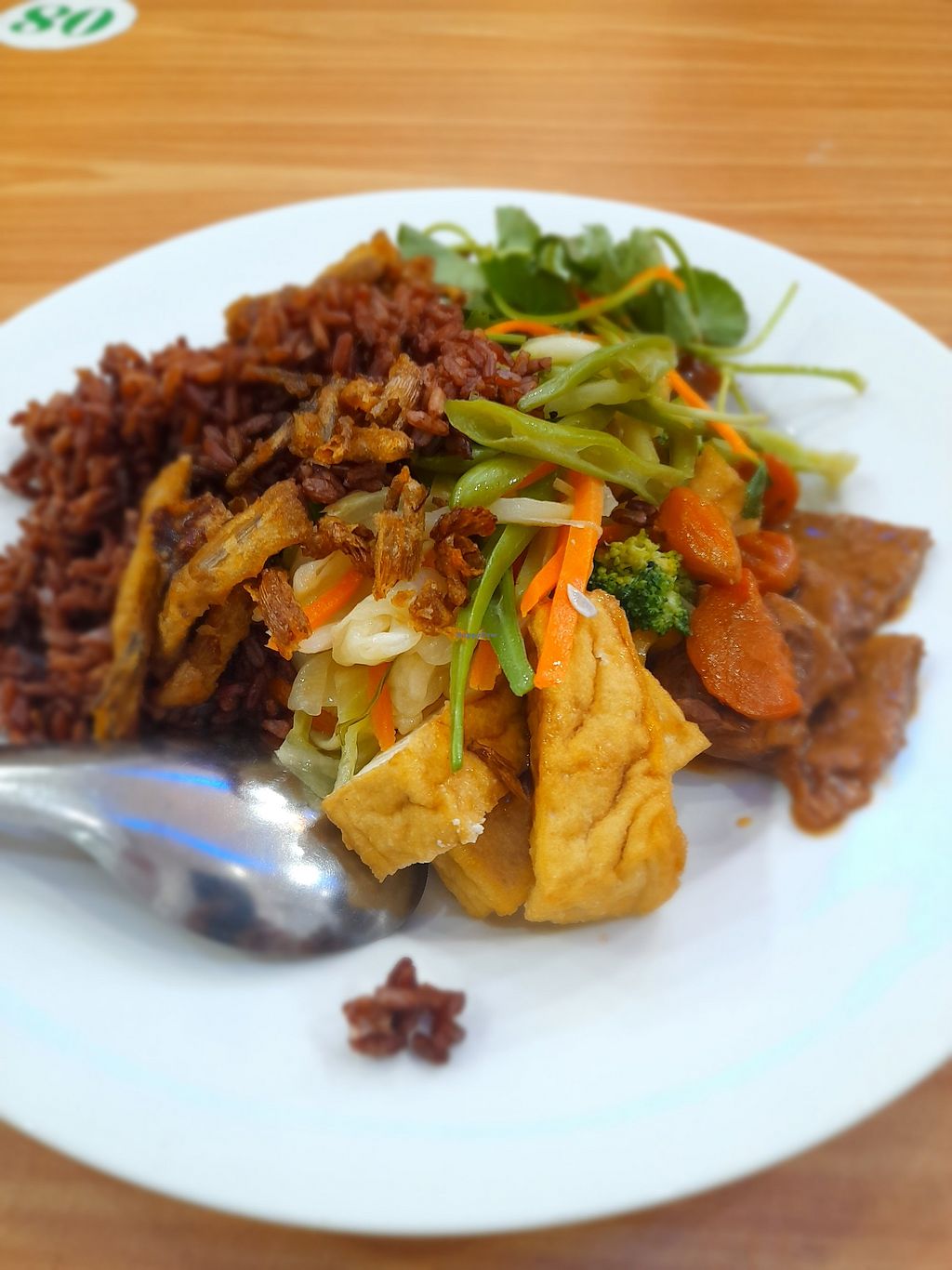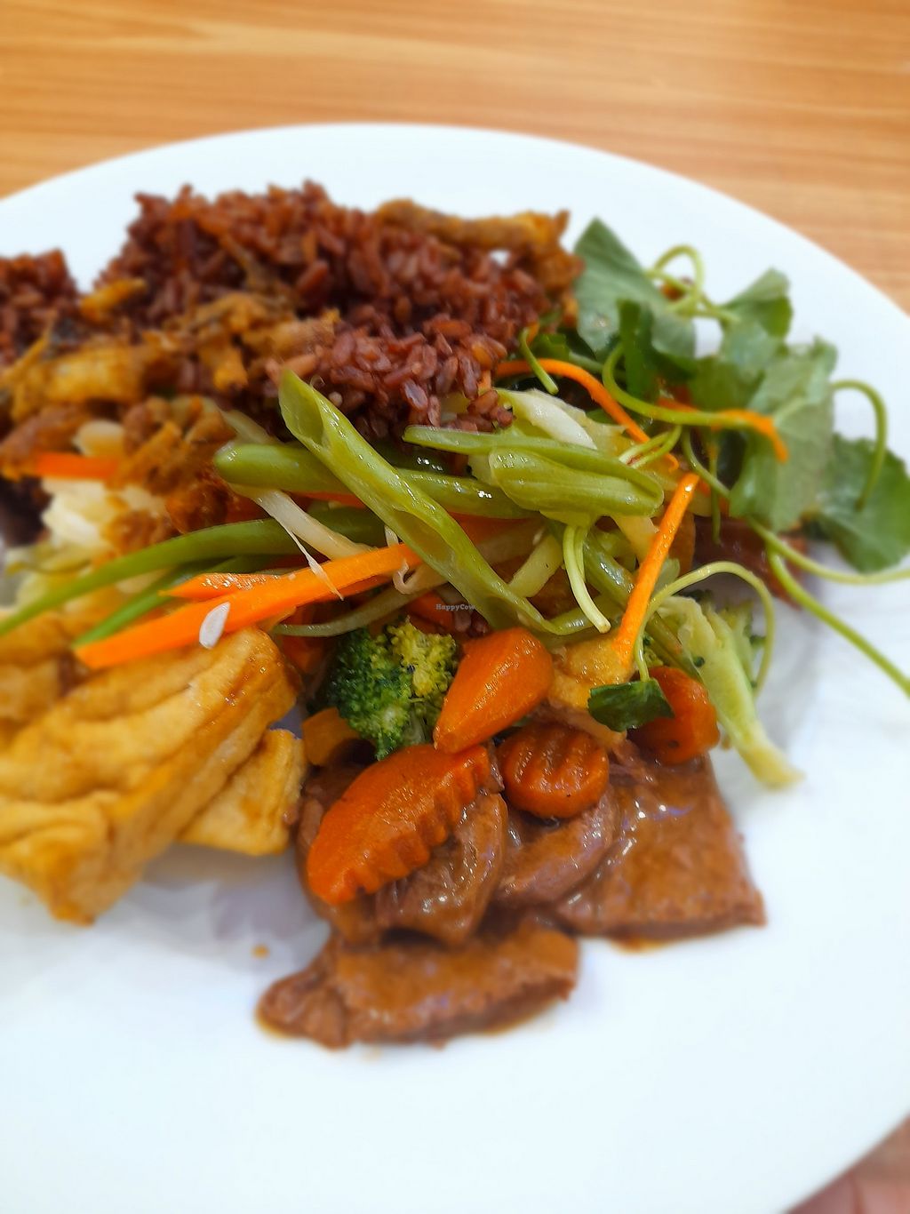 We came late, so nearly run out of most items. What was left was very nice indeed. Plenty to choose from. Red rice, white rice, noodles, veggies, fake meats, tofu items and more.