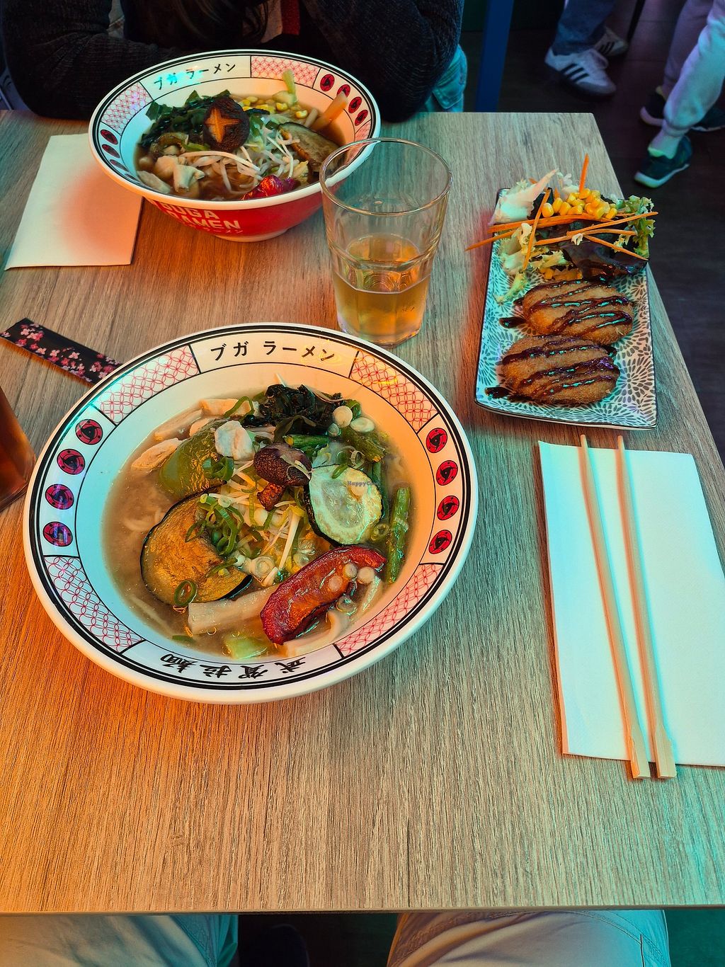 Vegano: 3 platos ramón, otro único con croquetas y puedes pedirlas sueltas, y también gyozas. Postre