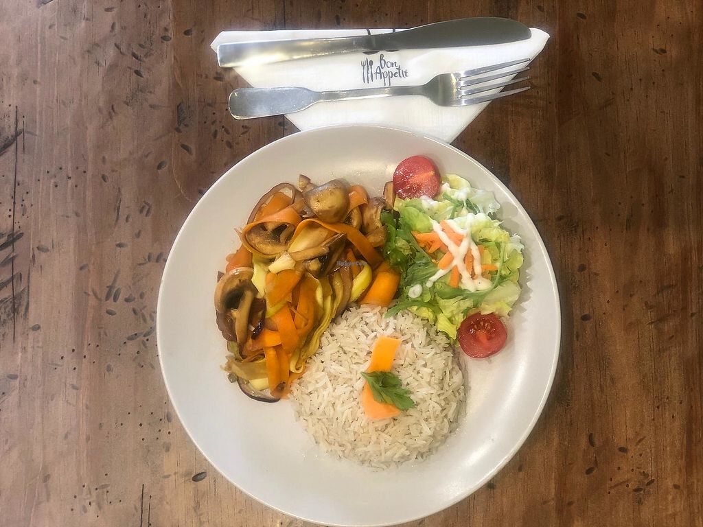 tofu teriyaki excellent and friendly staff Warm atmosphere and reason…