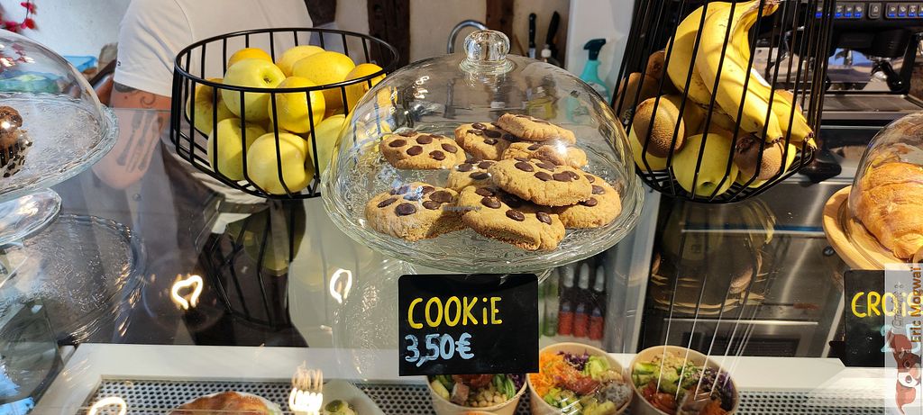 Not-dog, pain au chocolat, croissant, oat milk latte