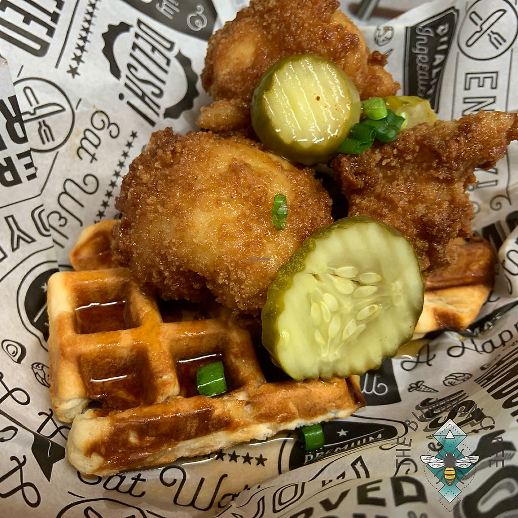 Southern Fried Cali & Waffles with a Jim Beam Maple Bourbon syrup & cr…