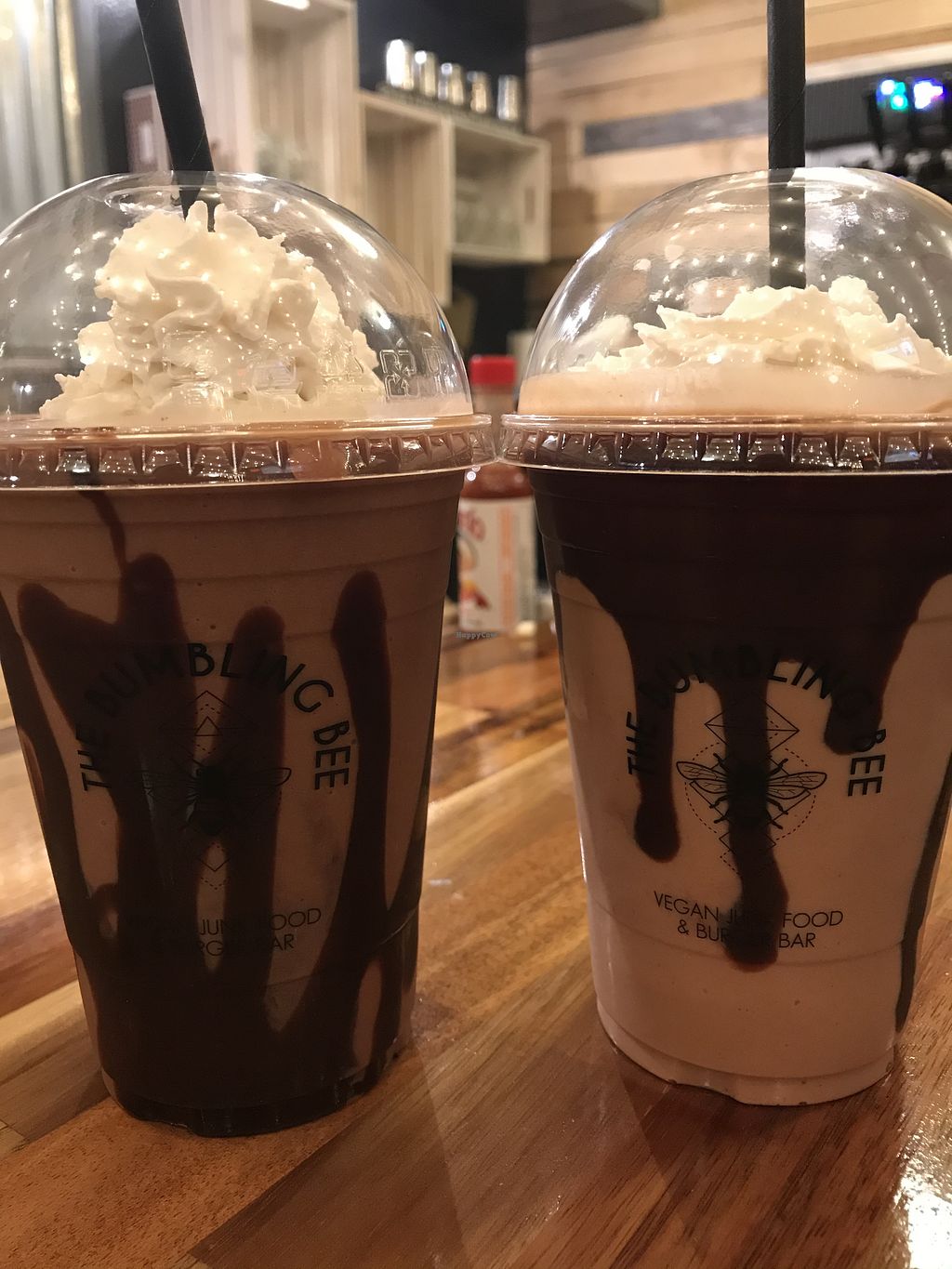Double chocolate milkshake and a peanut butter chocolate milkshake