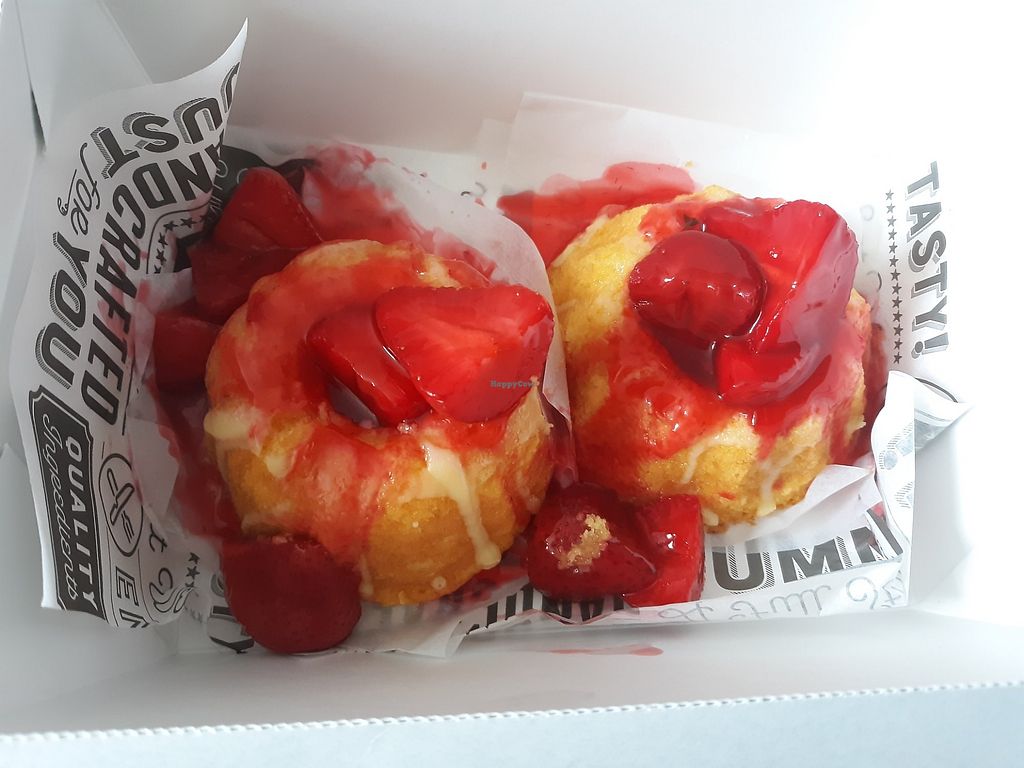 Not a fan of the lemon but very moist and the strawberries were tangy!