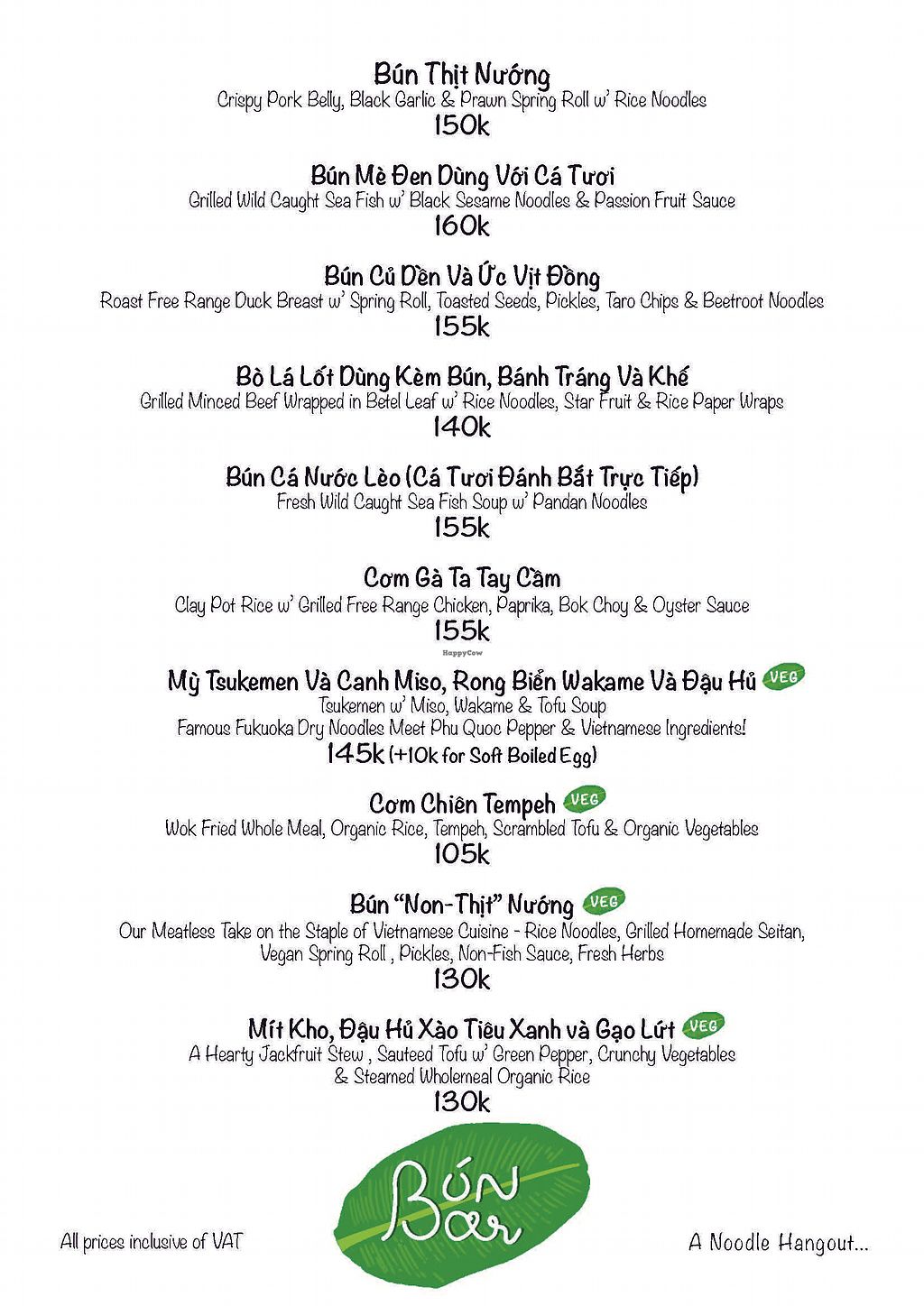 New menu with Vegan options
