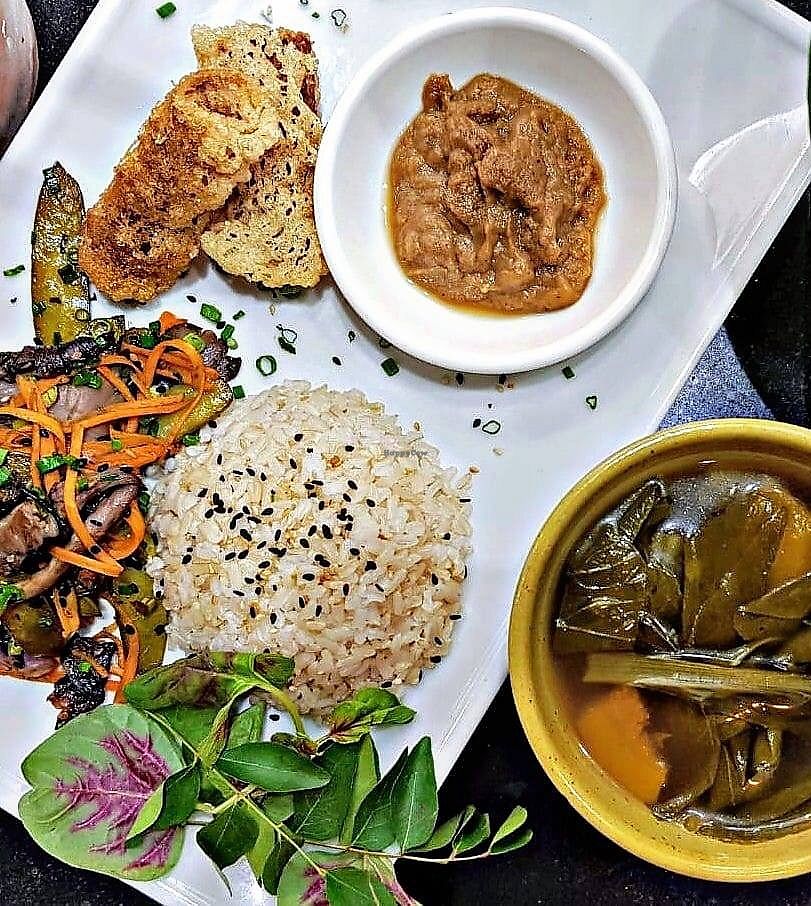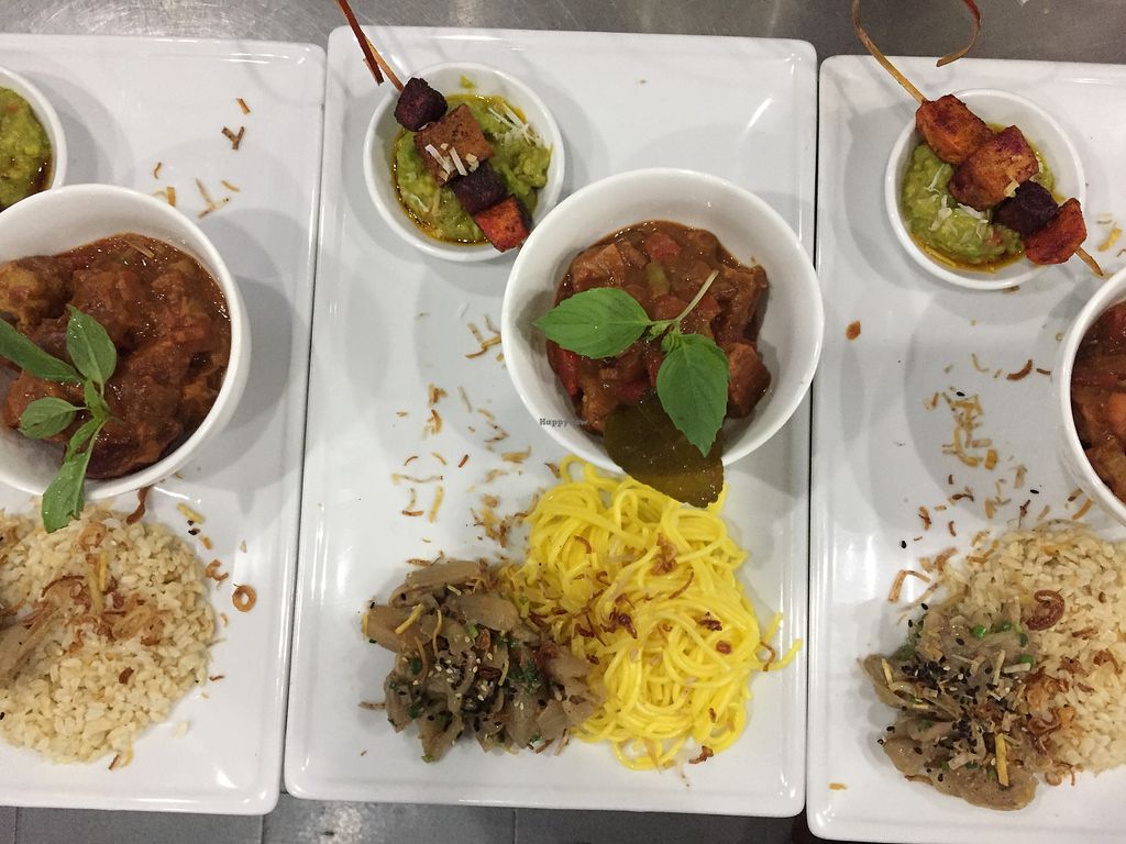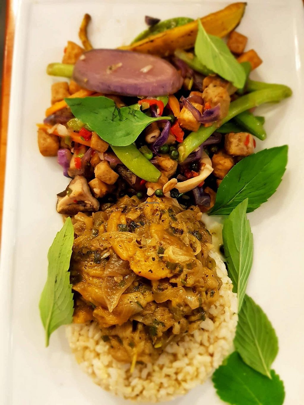 A Hearty Jackfruit Stew, Sautéed Tofu w’ Green Pepper, Crunchy Vegetab…