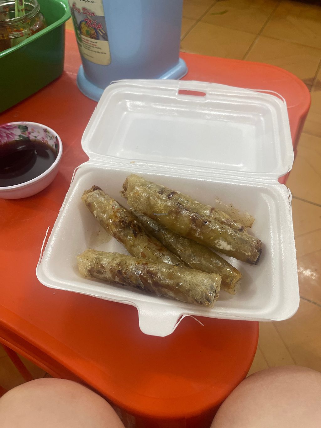 This place may not have the best seating but it is a common style in Vietnam. The food is good and cheaper than I can get in HCMC. The dishes are 30k and use a mix of tofu and peanuts for protein.
