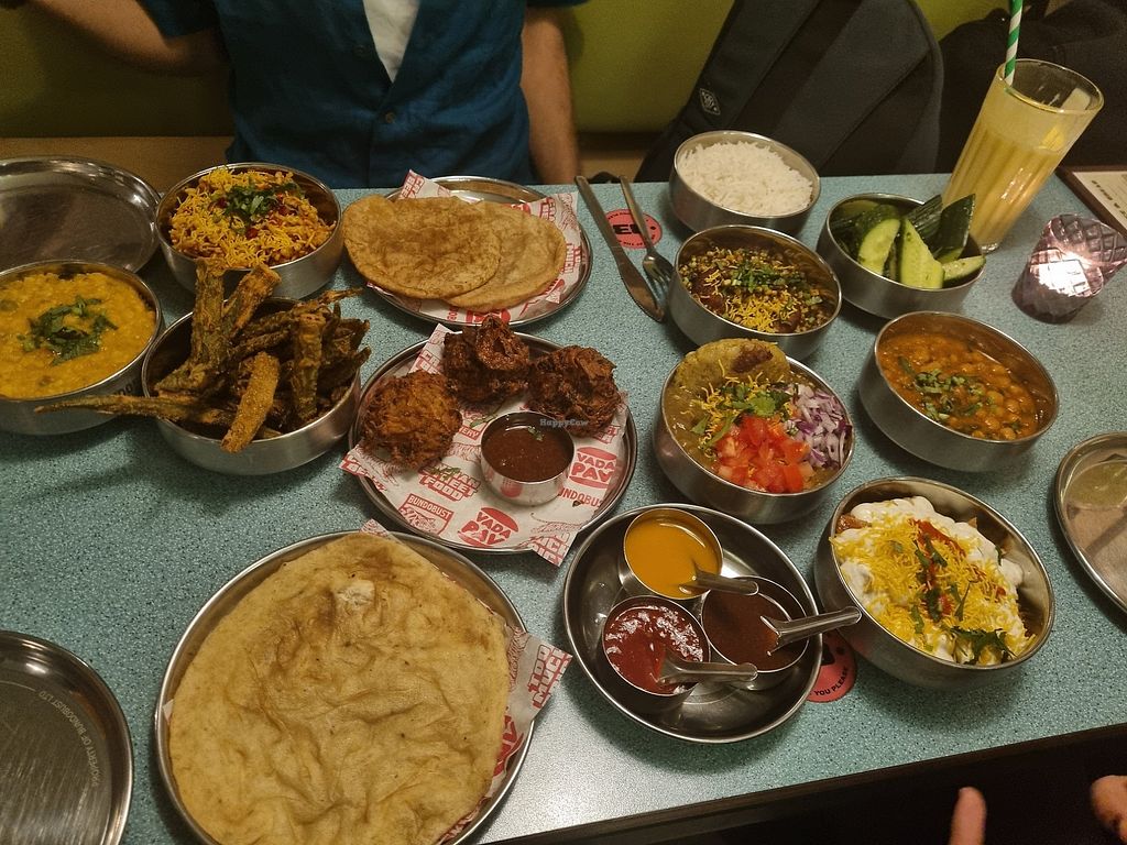 Very nice bhaji, sauces, breads - felt healthy too. We had the vegan combo for 2, plus 2 extra plates as there were 3 of us. Extra plates were paratha / thepla and khakri (cuumber as a pickle). Good pictures of the dishes on their website as well. Good value, 3 of us ate for £53 including 2 beers. Lots of choices. Unisex loos :)
