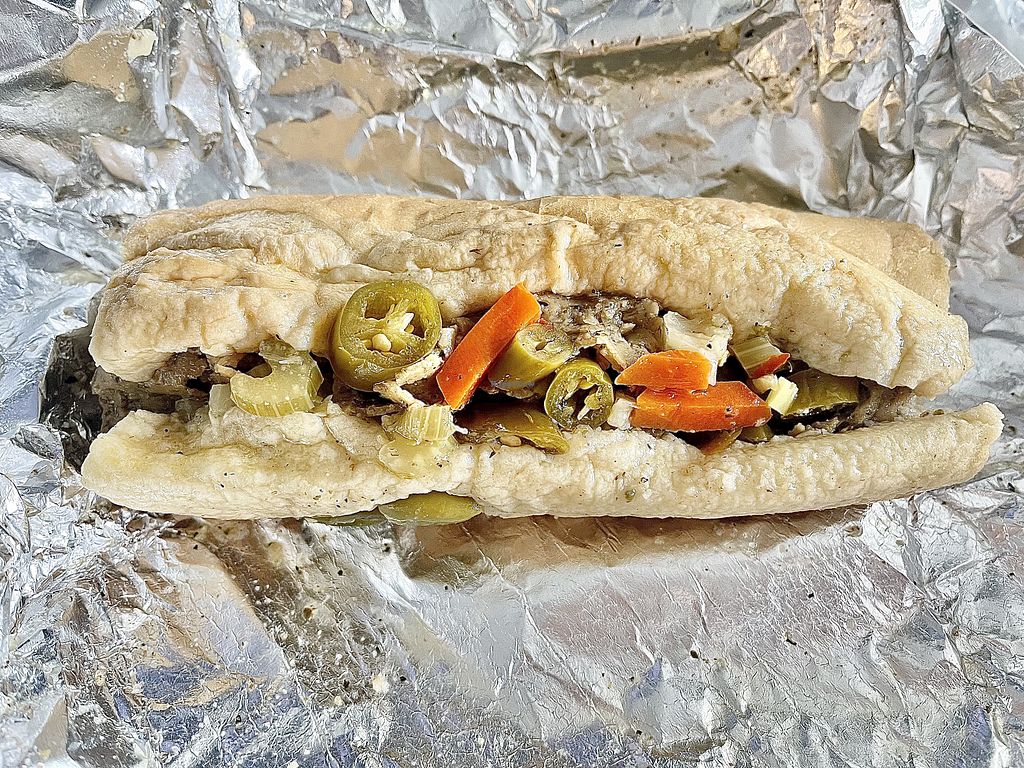 Solid vegan Italian beef sandwich. Period.