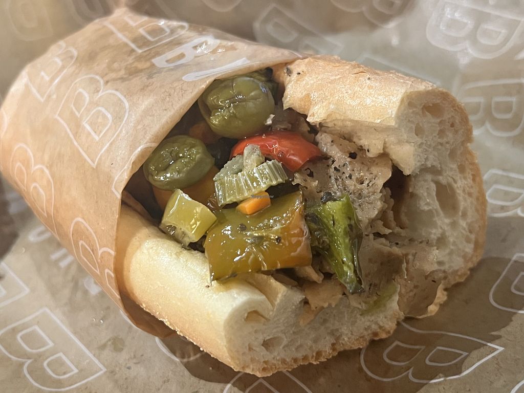 I had the vegan beefless sandwich. Delicious. They also had a vegan minestrone soup on their menu and a beefless bowl. Would go again.
