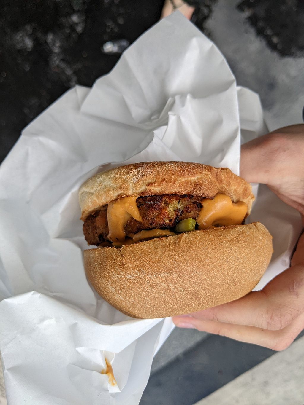 The burger with no spicy sauce