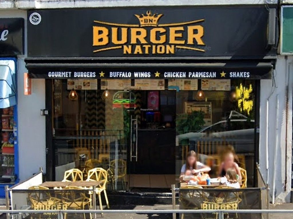 Serves meat, vegan options available. Takeaway burger joint with separate vegan menu section with various vegan burgers and a vegan hot dog. All meals come with french fries. Salad can be made vegan upon request. Open Mon-Sat 12:00-23:00, Sun 12:00-22:00.