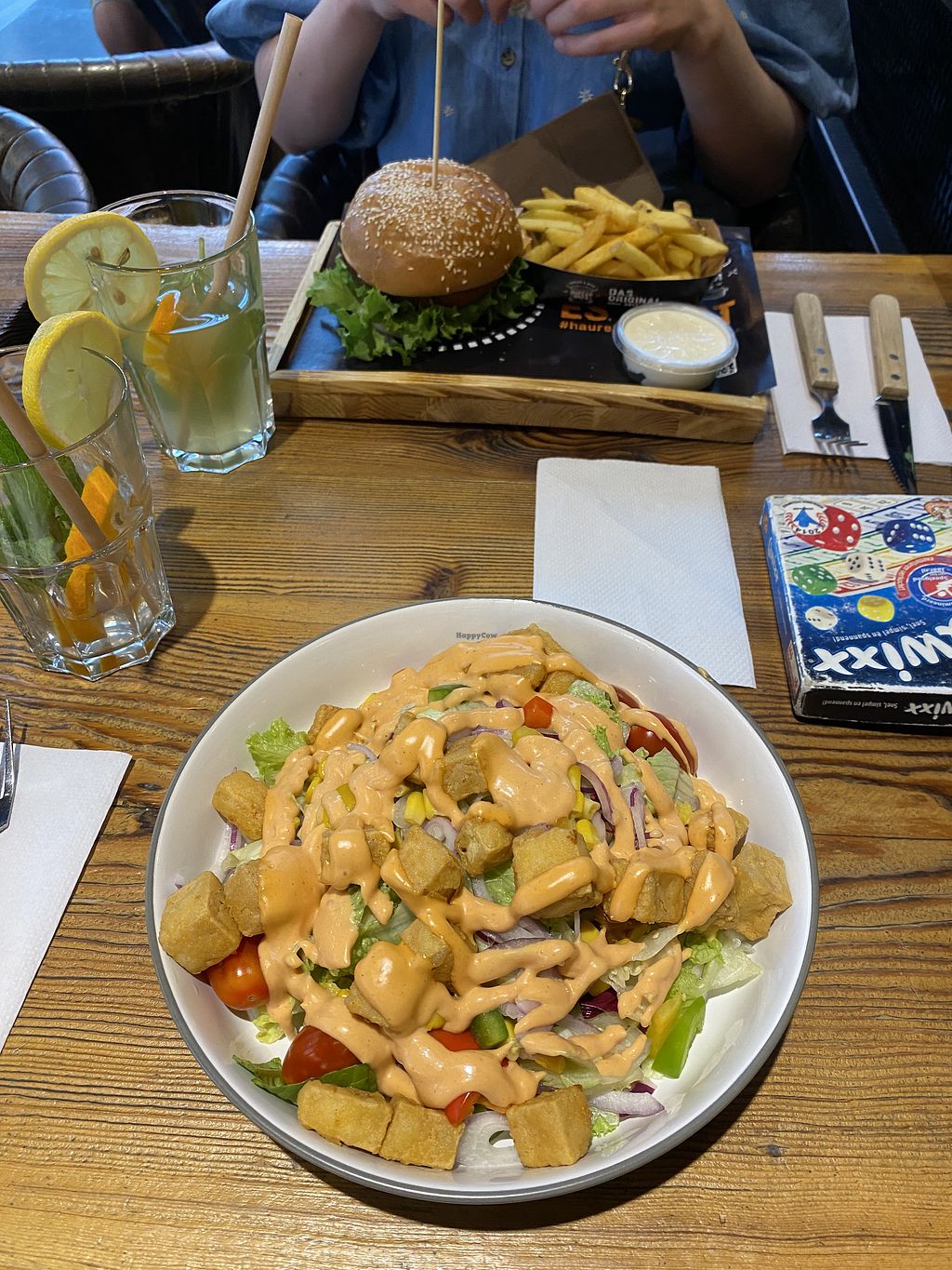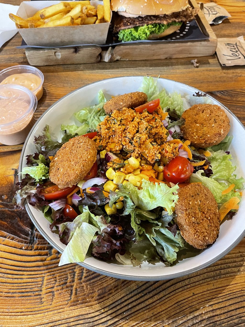 De veggieburger was erg lekker en we hadden ook de tofu salade met vegan cocktailsaus. Echt een aanrader!