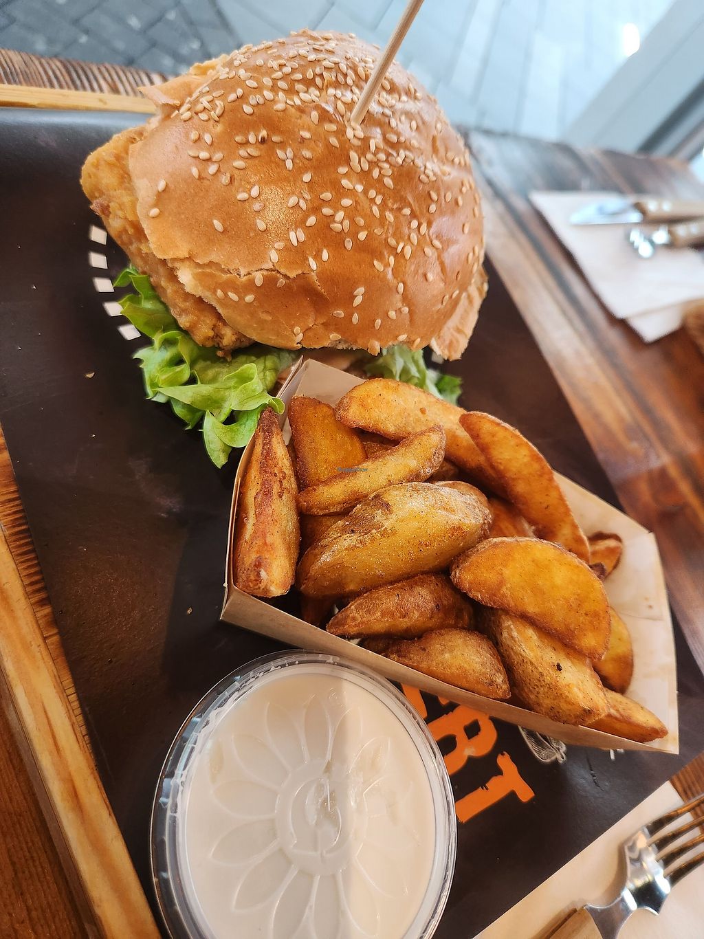 Read moreI tried the tofu burger, which was made with fried natural tofu. It was crispy but the tofu itself was not seasoned, hence not really flavored. I also had vegan mayonnaise with the fries. It was very cold and stuck so I had to stir it for several seconds for it to become kind of creamy.