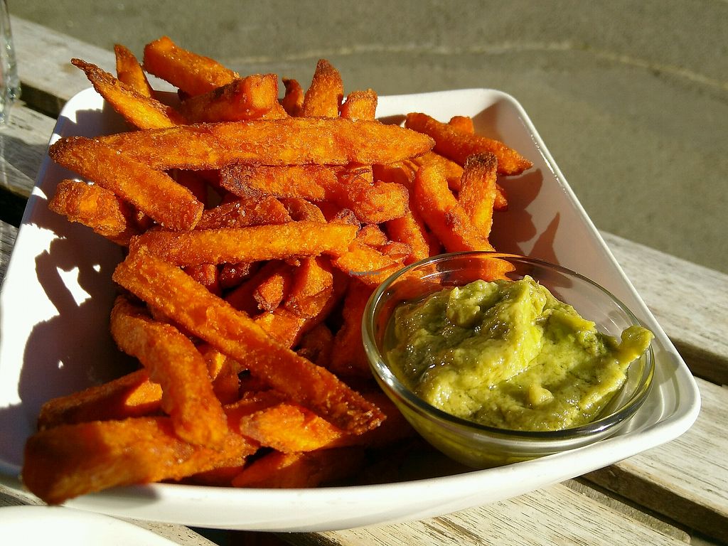 Serves meat, vegan options available. Burger restaurant with a vegan burger - be sure to ask for the vegan patty. Also serves handcut fries, salads, and has soymilk. Gets busy. Open Tue-Sun 12:00pm-10:00pm.