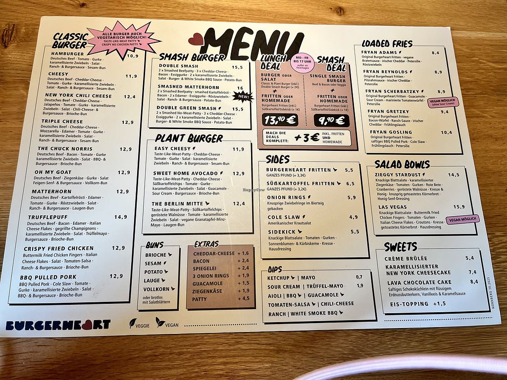 we got the lunch menu deal smashed and regular berlin style burger and supringly the smashed one was yummier (we addded guacamole) the vegan meat also was different for both patties😄