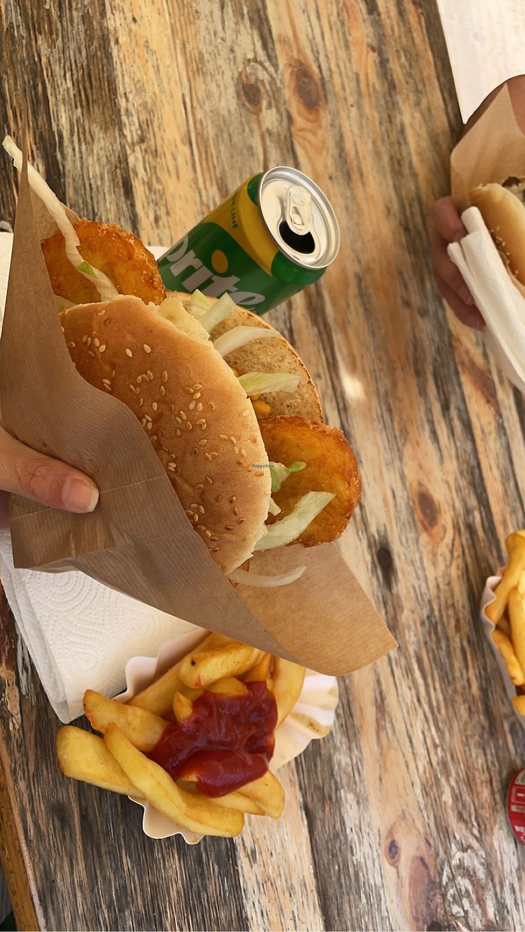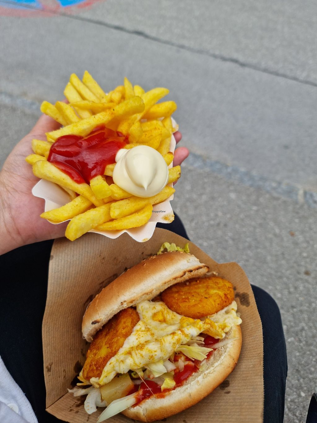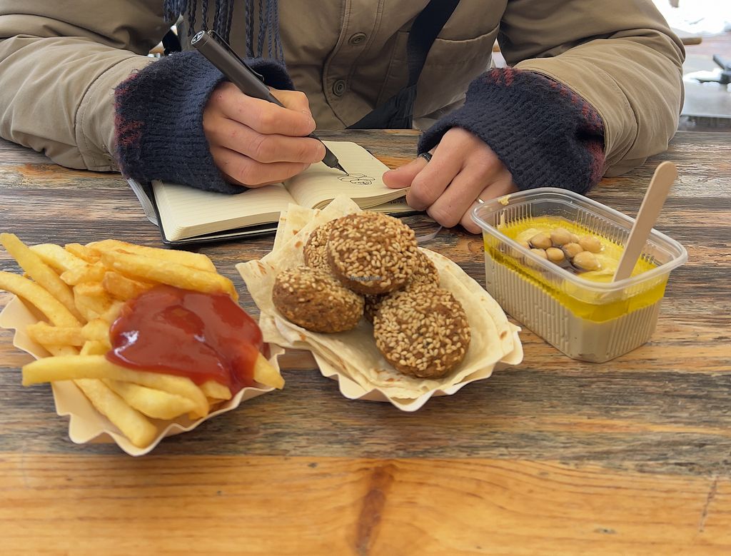 We found this shop that claimed they had vegan and vegetarian options. We than proceeded to ask and the owner said he can make us vegan burger (instead of beef patty, potato pancakes) without cheese and mayo. He was really sweet, he even said the buns are completly vegan with no milk or eggs. Other vegan options were fallafel either in arab bread with hummus or hot dog style, hummus with arab bread or classic - fries. It was nice, price was OK for 2 vegan burgers we paid 13euros