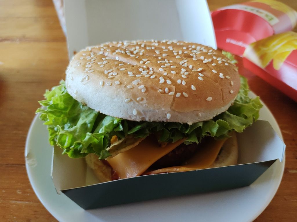 Vegan 🌱 cheese burger 🍔 with fries € 9,10