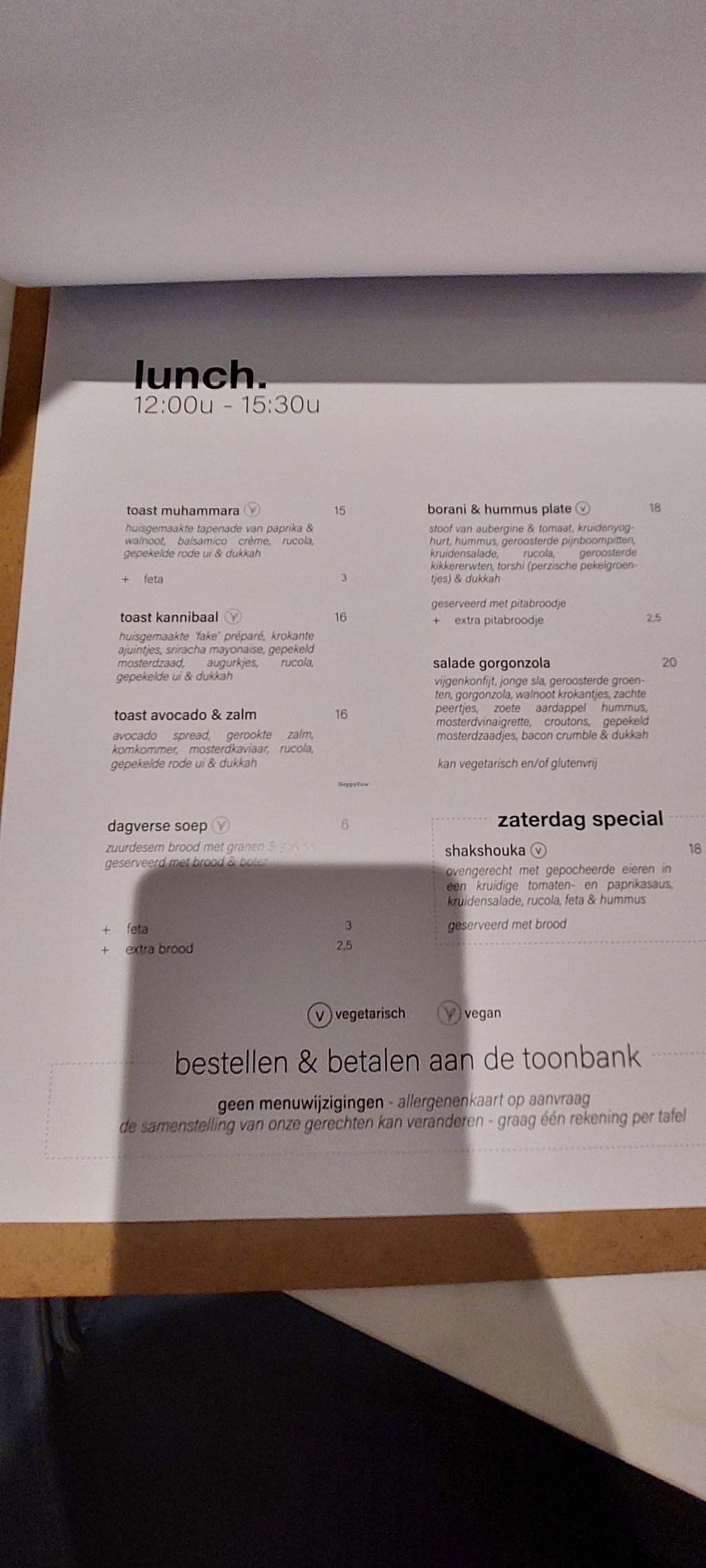 We hebben de toast kannibaal + toast pompoen gegeten. Heerlijke smaken en lekker gekruid, perfect voor een lunch! (er is ook een ontbijtmenu).