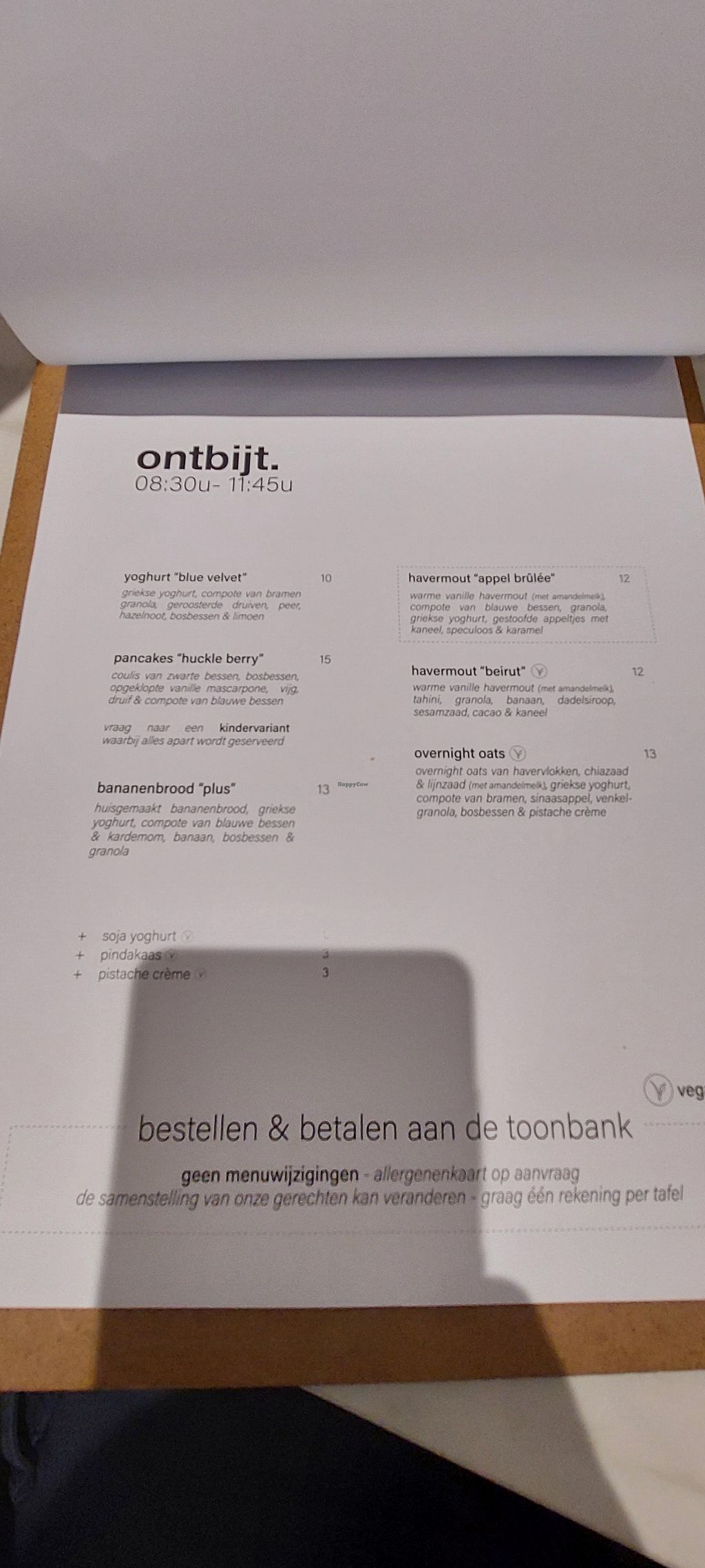Serves meat, vegan options available. Coffee, breakfast and lunch with mostly plant-based dishes. Breakfast items include smoothies, oatmeal and plant-based yoghurt. Lunch includes toast and salads. Open Tue-Sat 08:30-17:00. Closed Sun-Mon.