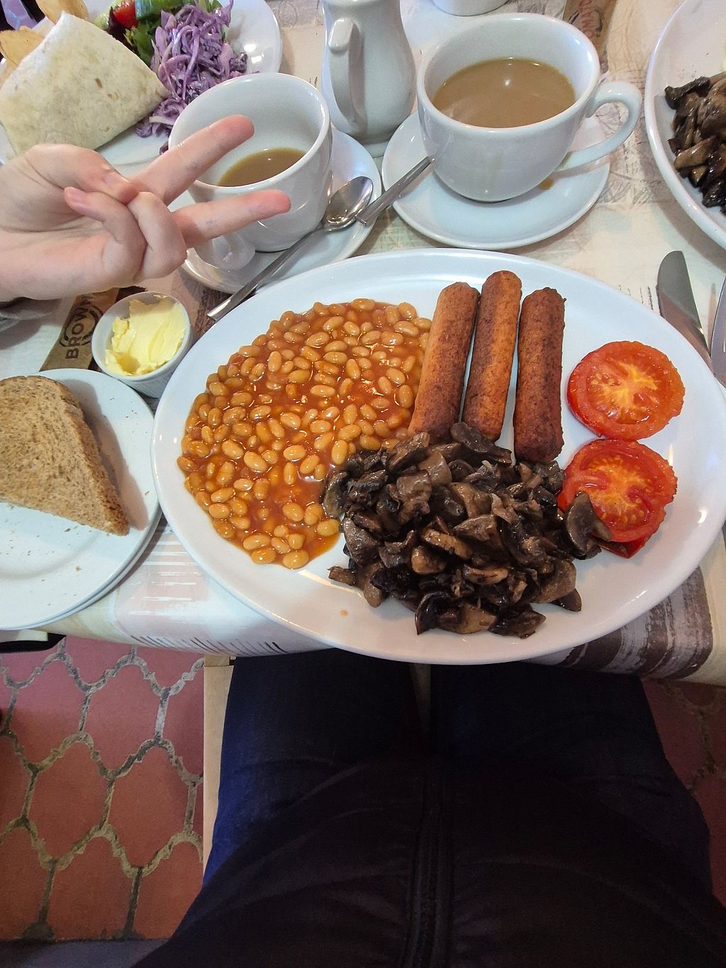 Sweet potato falafel wrap and tea with oat milk
