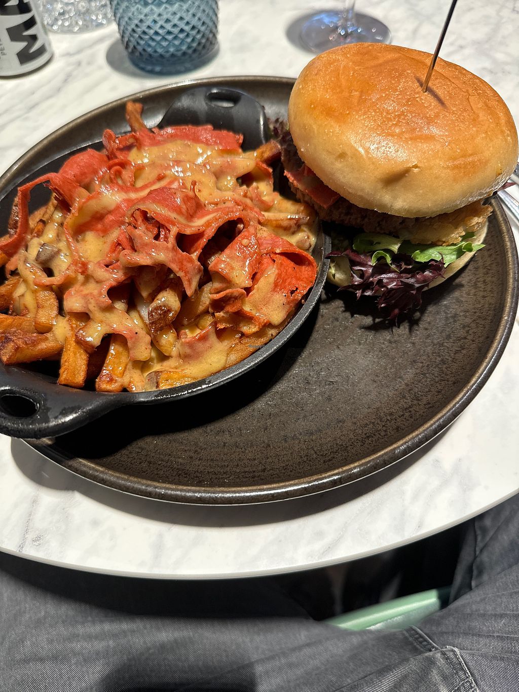 Burger with bacon and cheese fries
