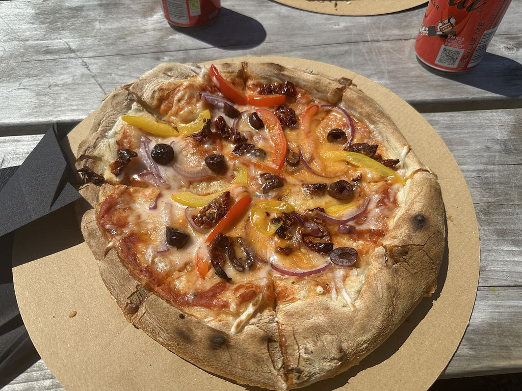 Didnt fancy either of the items on the menu inside - i think it was a falafel burger and some kind of beetroot salad. But outside was a pizza van and they did a vegan and veg pizza which was very nice. Cost about £26 for 2 pizzas and 2 cans of coke. Would have it again if we were there. 3/4 stars really as not completely vegan.
