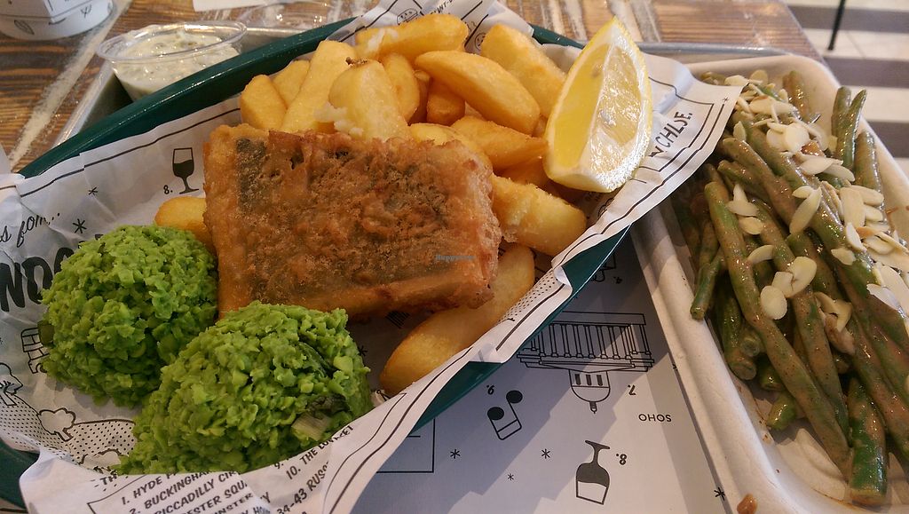 Tofish and Chips and Market Greens.