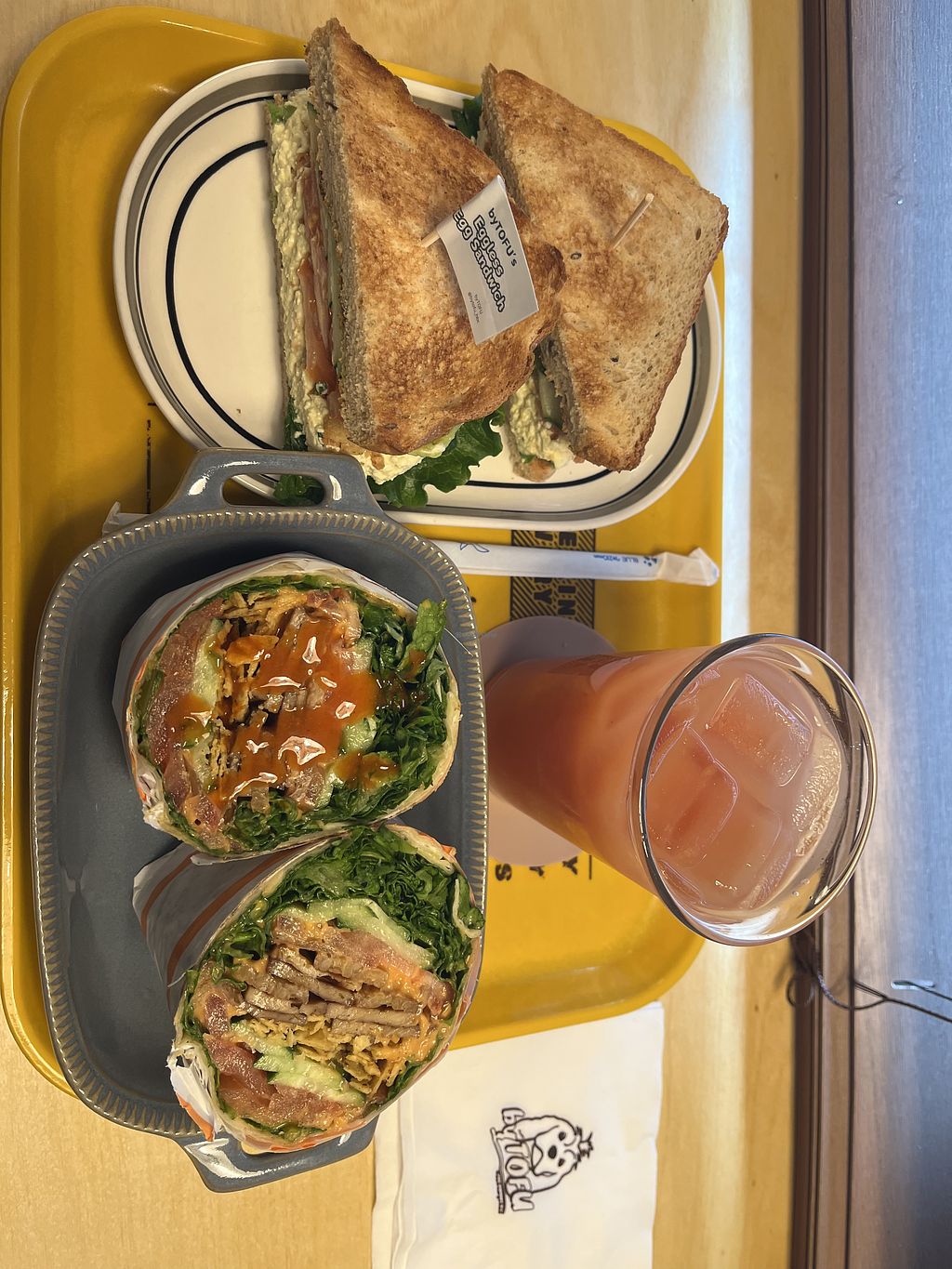I haven’t been to the restaurant but I got the VCLT wrap, orange juice and blueberry banana smoothie delivered. I’m so happy they have the option for no ice for their drinks and they don’t lessen the quantity. Best fresh OJ with pulp😍 the wrap and smoothie were delicious as well! Really generous portions. Can’t wait to try the other items!