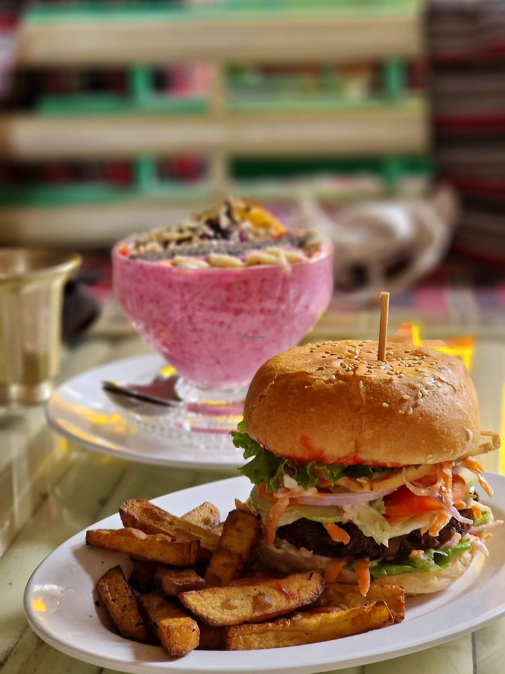 Red smoothie and burger