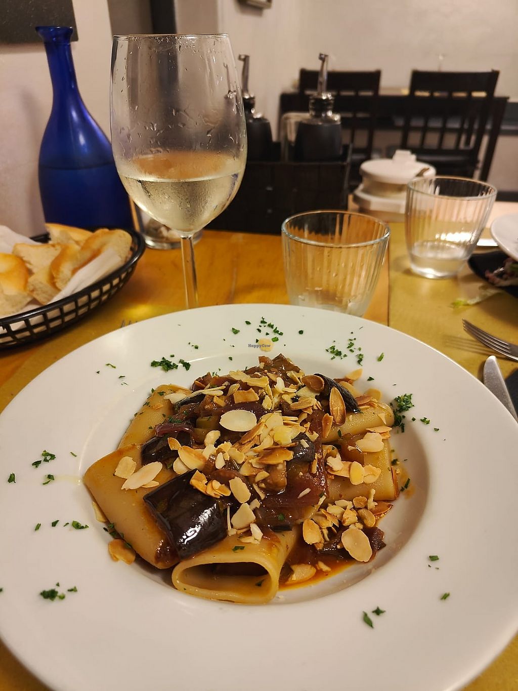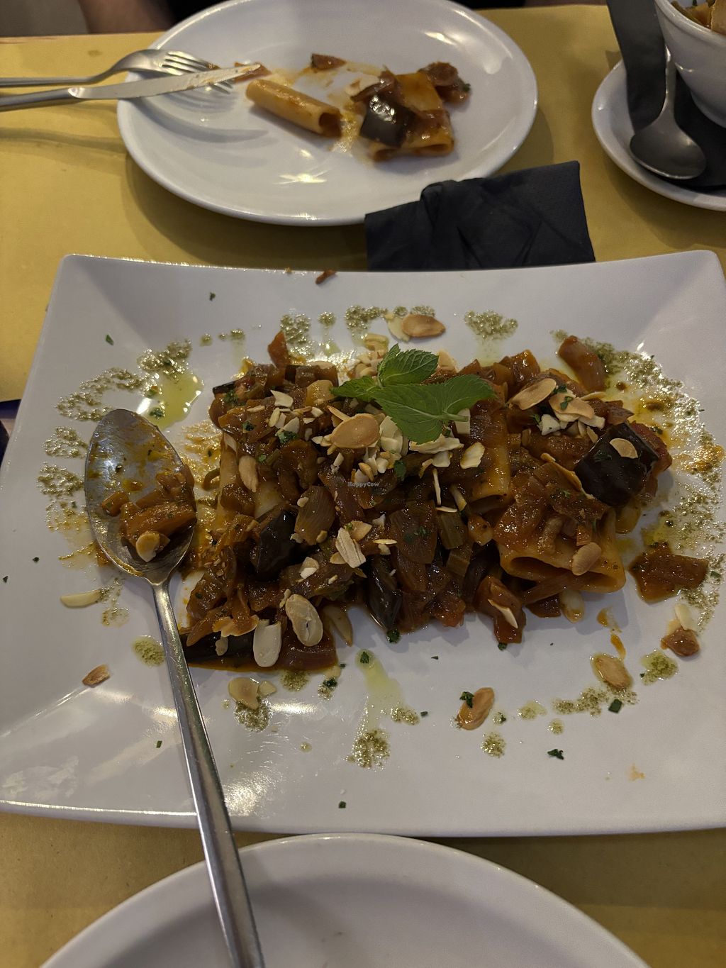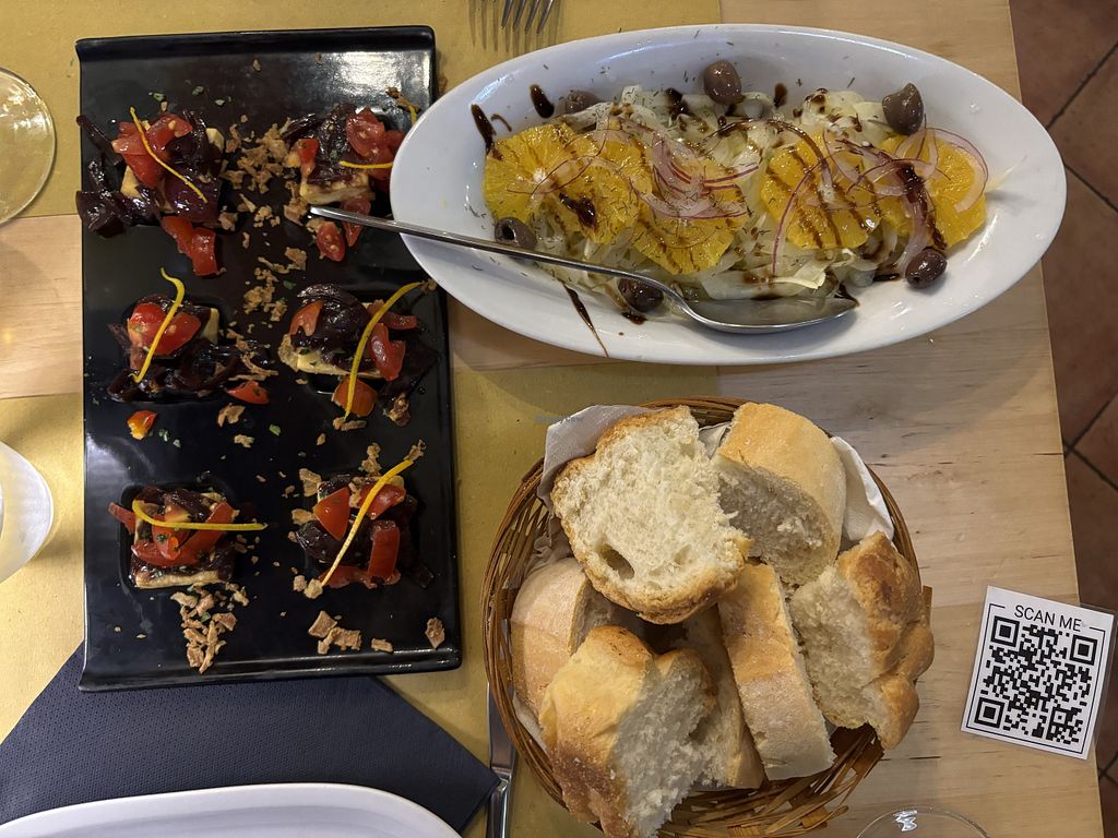 Locale con un antipasto, un primo e un dolce vegan in menu. Apprezzo lo sforzo vista la difficoltà di trovare opzioni vegan qui ma non ci siamo. I paccheri che ho ordinato sono semplicemente senza tonno (nessuna proteina vegetale), rimane solo la caponata di melanzane con mandorle, ma il piatto risultava molto acquoso, slegato e poco saporito (ben 13€). La caponata di contorno senza infamia e senza lode, anche questa un po’ acquosa (5€). Unica nota positiva il pan focaccia molto buono.