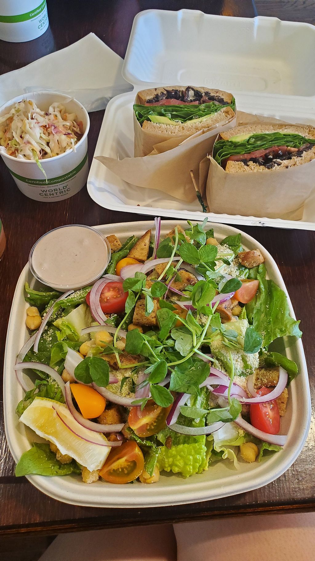 Read moreI also got a small chickenless salad to try. It does taste like chicken salad! Texture is obviously way different but I liked it. I also tried the raspberry cheesecake square... that was yummy!