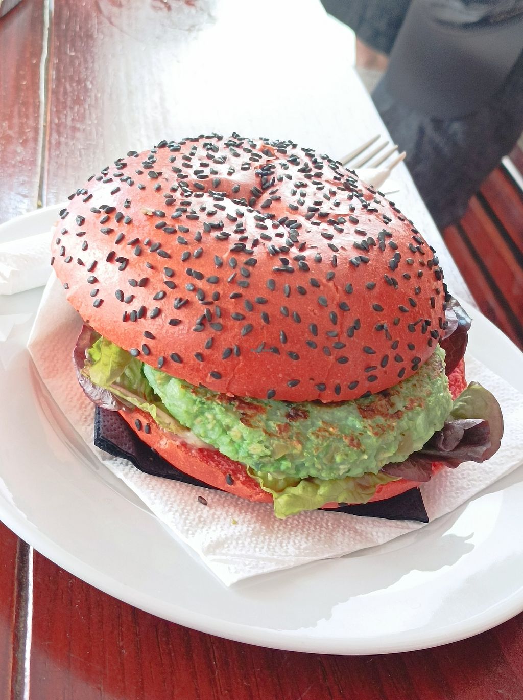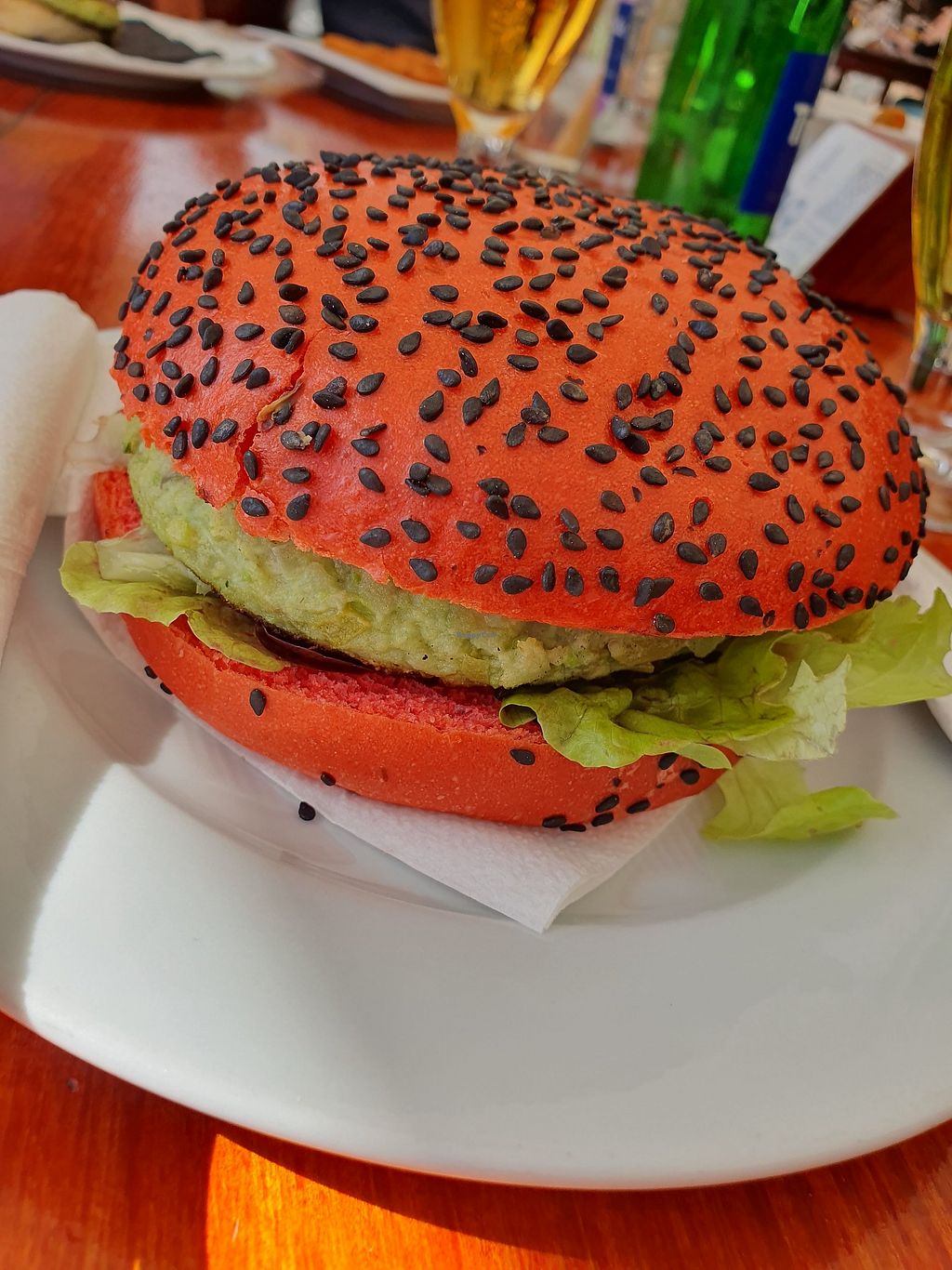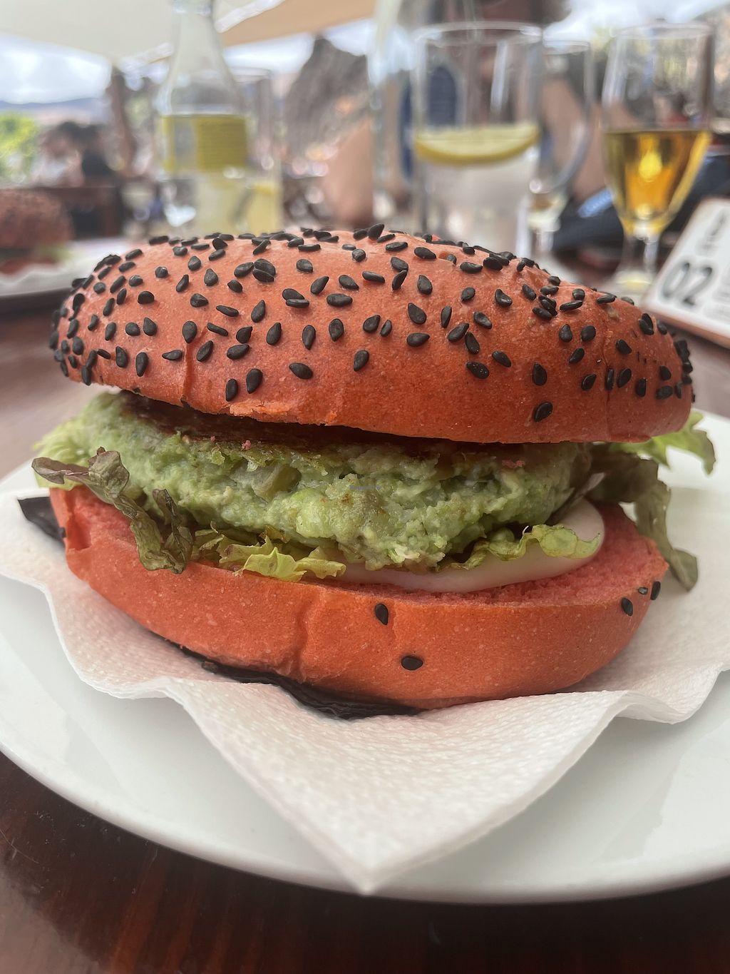 Gebratenes Gemüse-Sandwich mit schwarzer Olivenpastete