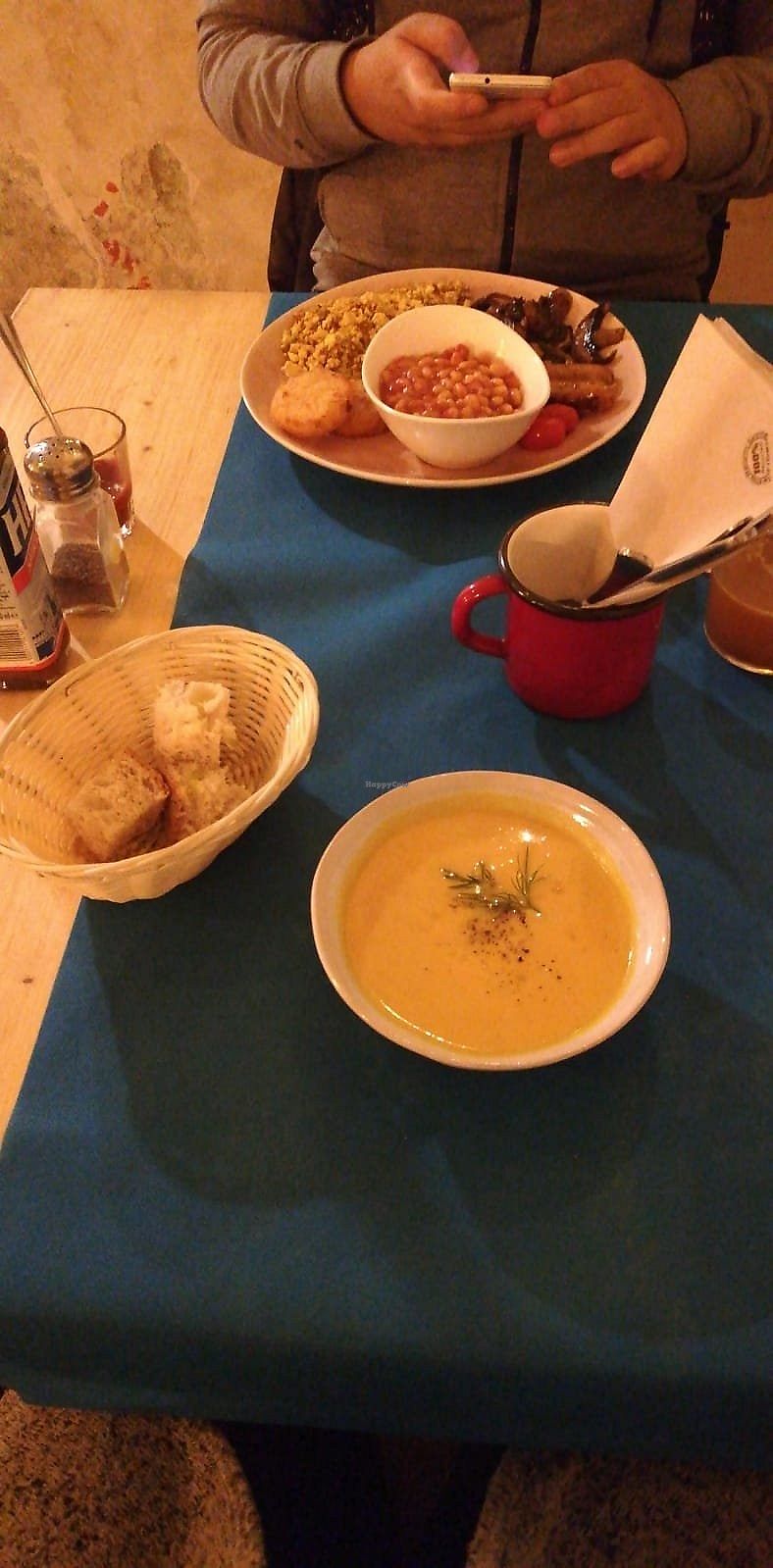 Pumpkin soup and english breakfast